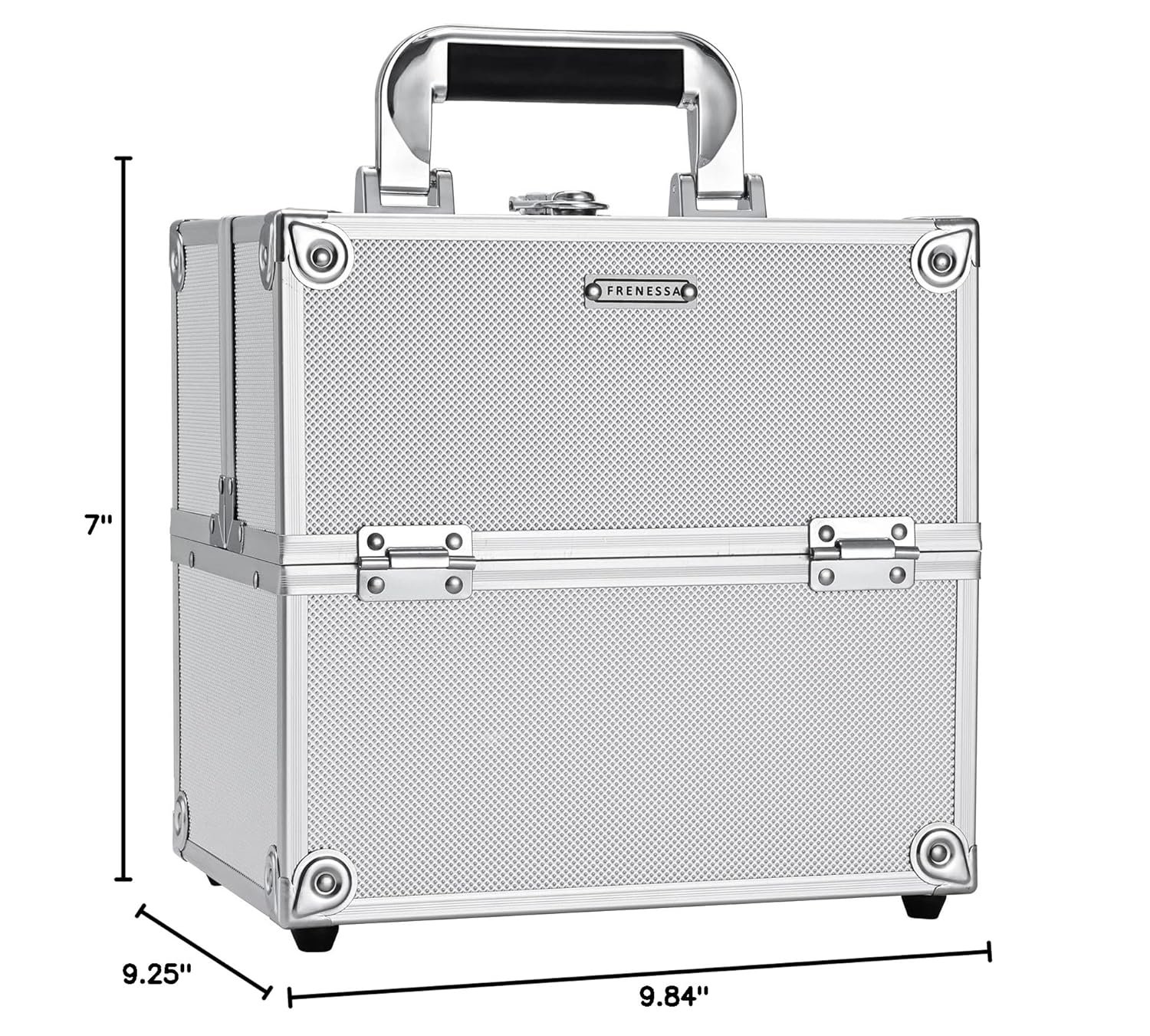 #FRENESSA #Makeup #Train #Case #Makeup #Organizer #Box #Portable #Cosmetic #Travel #Case #Lock #Trays #Aluminum #Hard #Vanity #Box #Artist #Nail #Beauty #Storage #Organizer #Cosmetic #Suitcase #Bright #Silver