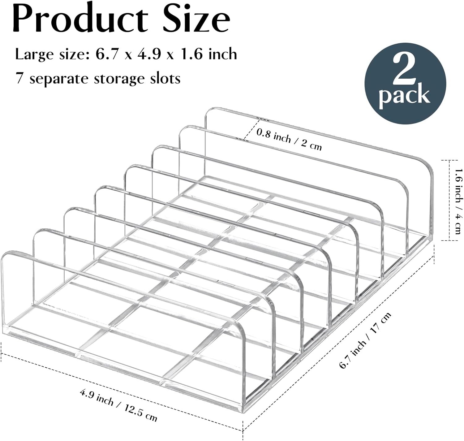 Proper Size: The eyeshadow pallet organizer measures 4.9″x6.7″x1.6″ and each divider is spaced 0.8″ apart in an open design that allows you to store your favorite makeup vertically