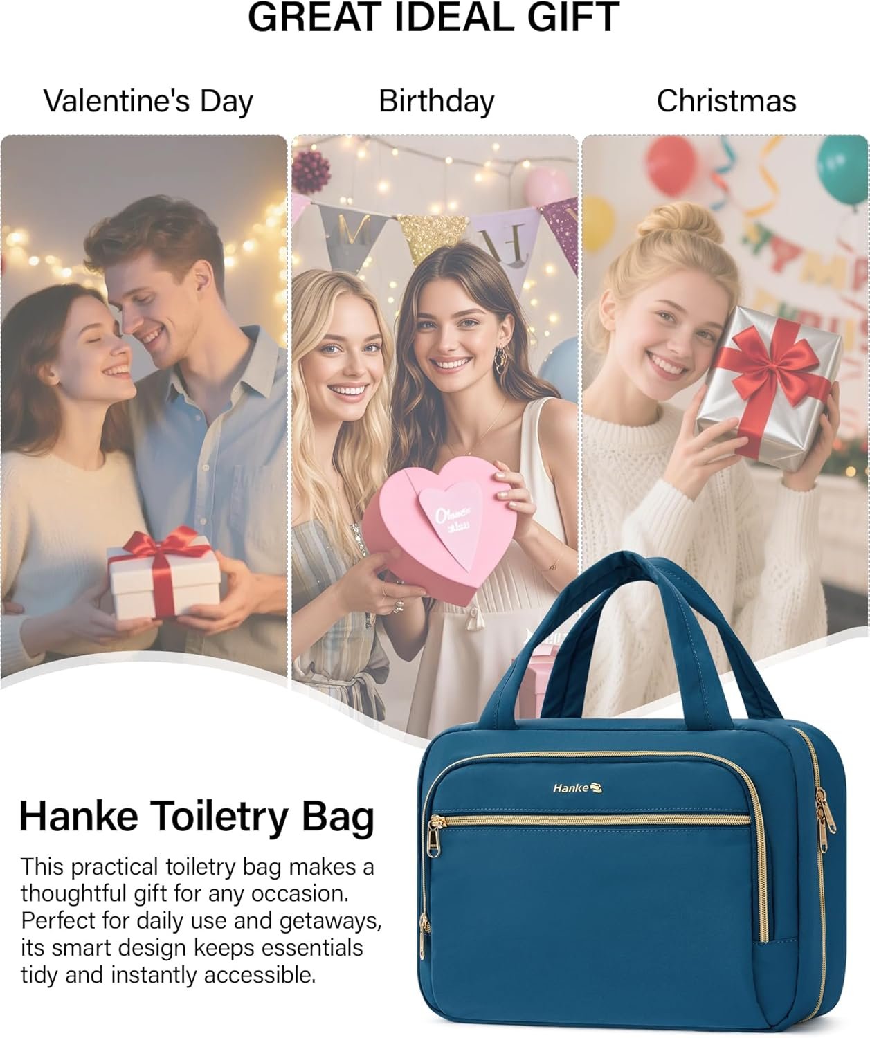 【Perfect Gift for Organized Travel & Daily Use】Hanke hanging toiletry bags for traveling. An excellent gift idea for women, this versatile toiletries bag is perfect for weekend trips, gym sessions, or daily use. It combines functionality with a sleek look, making organization effortless and stylish.