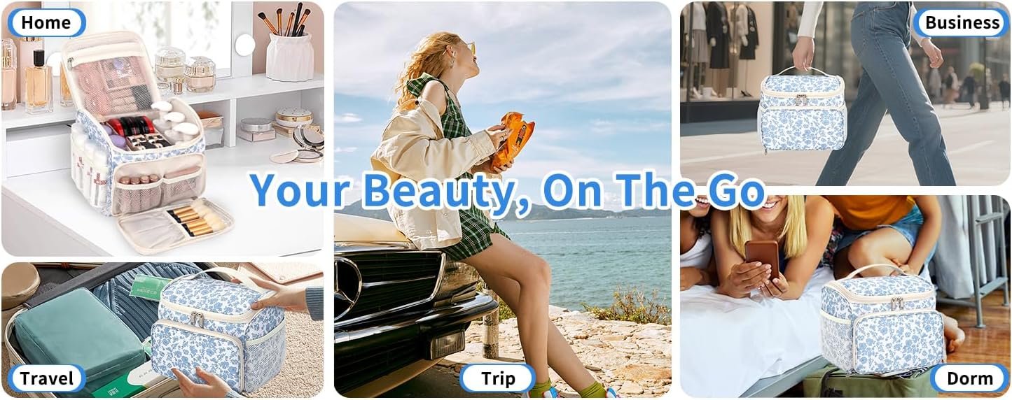 Easy Access & Portability – The large opening allows for easy viewing and access to all your cosmetics; Designed as a convenient travel makeup bag or travel toiletry bag with a handle for easy carrying on the go