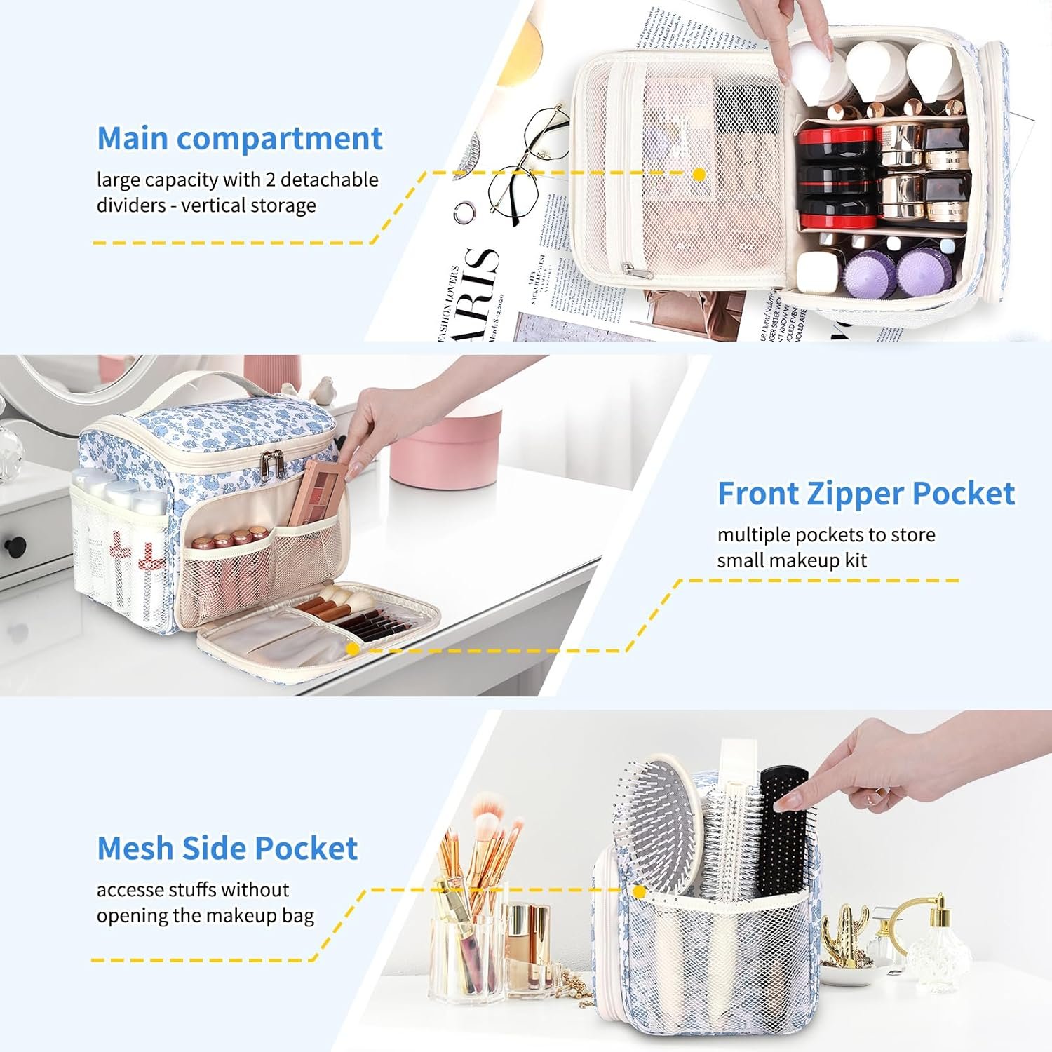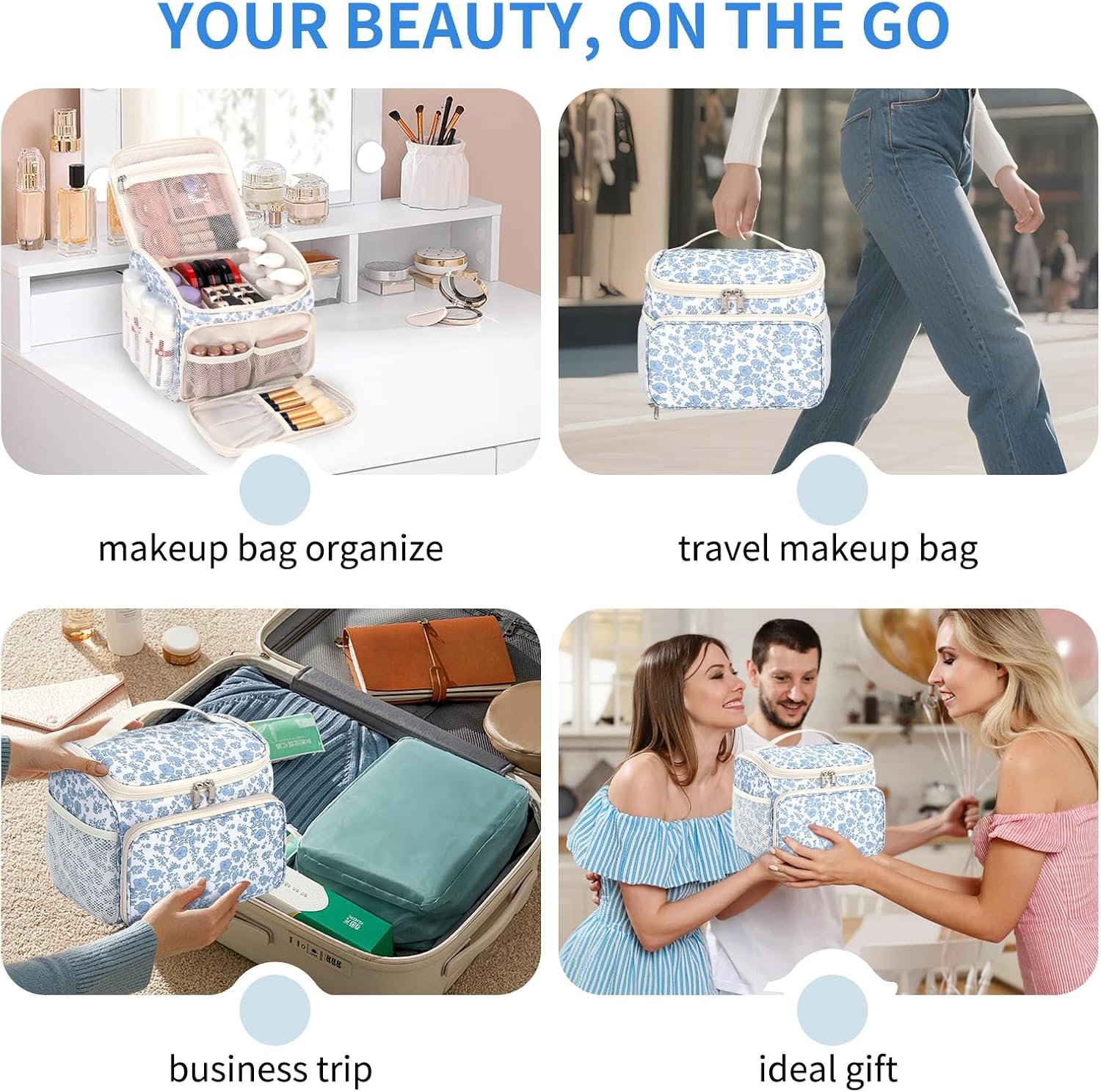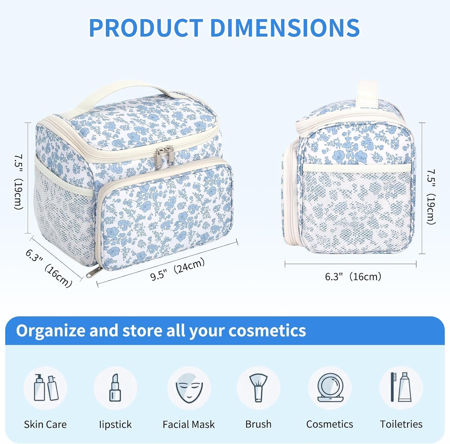 #CUBETASTIC #Makeup #Bag #Large #Floral #Travel #Case #Women #Removable #Partitions #MultiPockets #Vertical #Storage #Cosmetic #Pouch #Toiletry #Bag #Floral #Blue #Large
