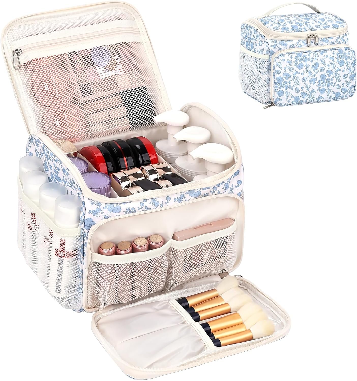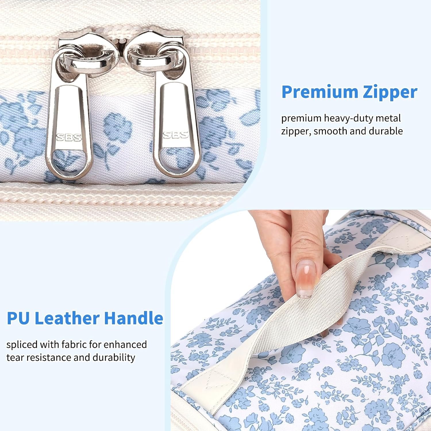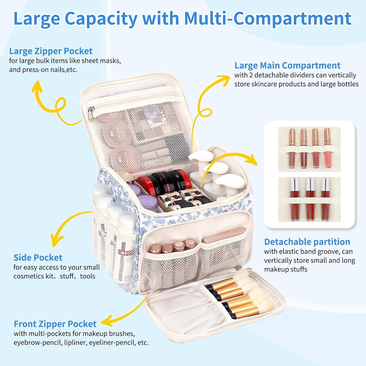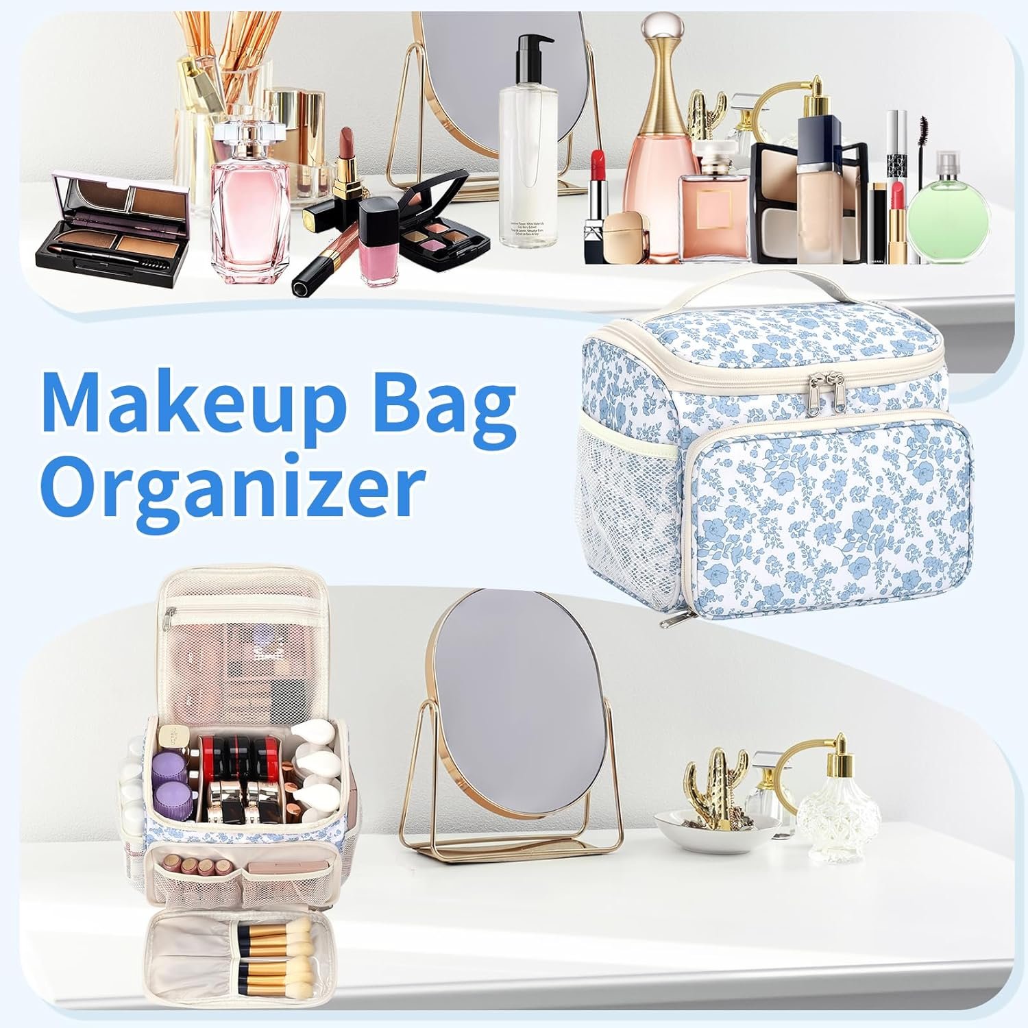 #CUBETASTIC #Makeup #Bag #Large #Floral #Travel #Case #Women #Removable #Partitions #MultiPockets #Vertical #Storage #Cosmetic #Pouch #Toiletry #Bag #Floral #Blue #Large