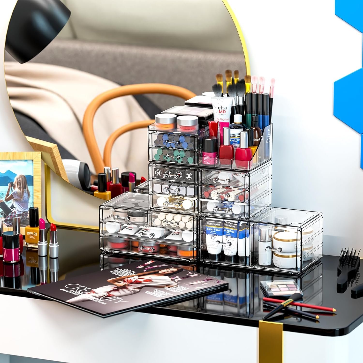 #acrylic #Organizers #Vanity #Drawers #Pack #Clear #Drawer #OrganizersPlastic #Cute #Desk #Accessories #Organization #Bathroom #Organizers #Storage #Case #Box #Cube #BeautySkin #Care