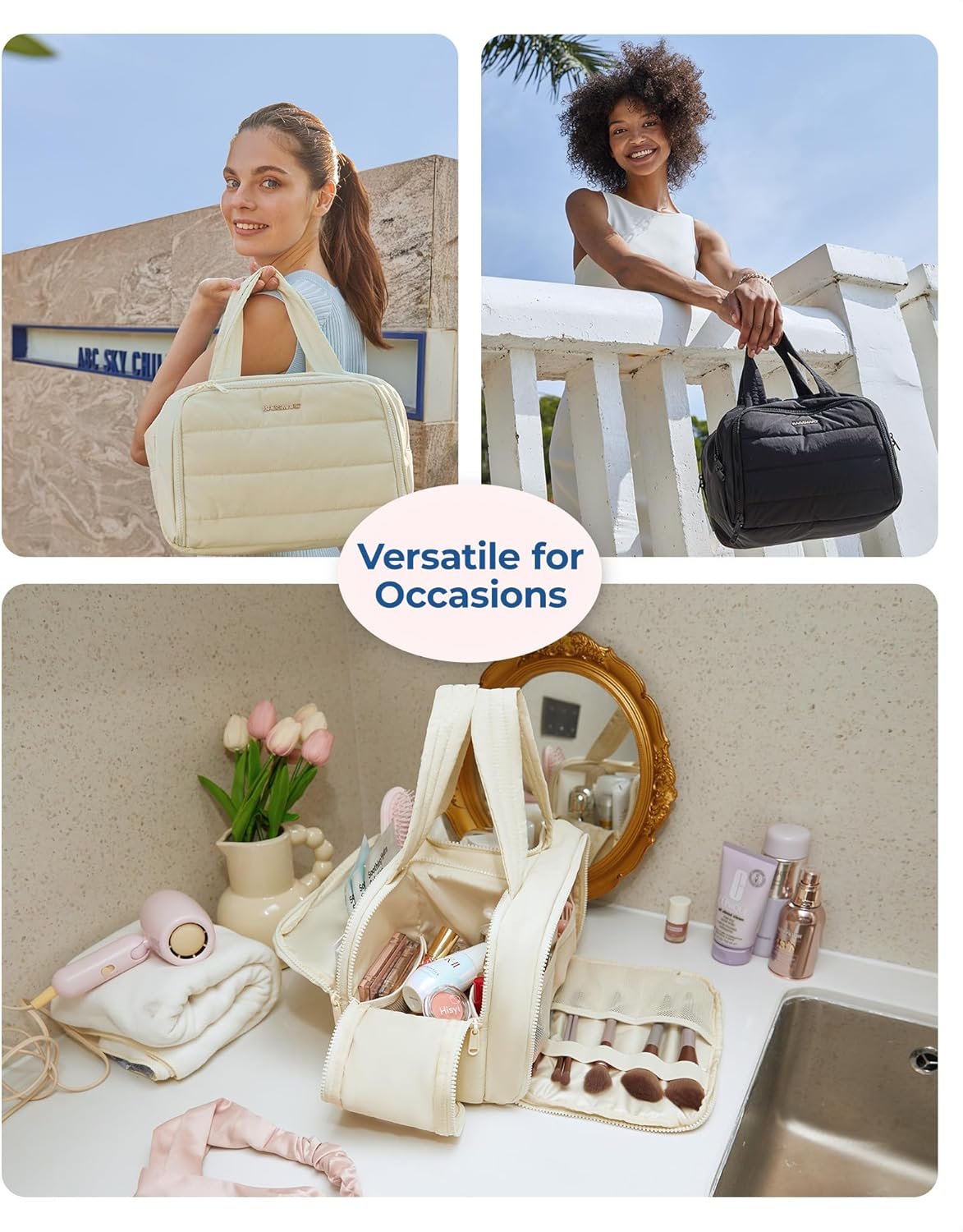 #BAGSMART #Travel #Toiletry #Bag #Crush #Toiletry #Bag #Women #Wideopen #Puffy #Toiletry #Bags #Traveling #Large #Travel #Cosmetic #Makeup #Bag #Organizer #AccessoriesToiletrie #Beige
