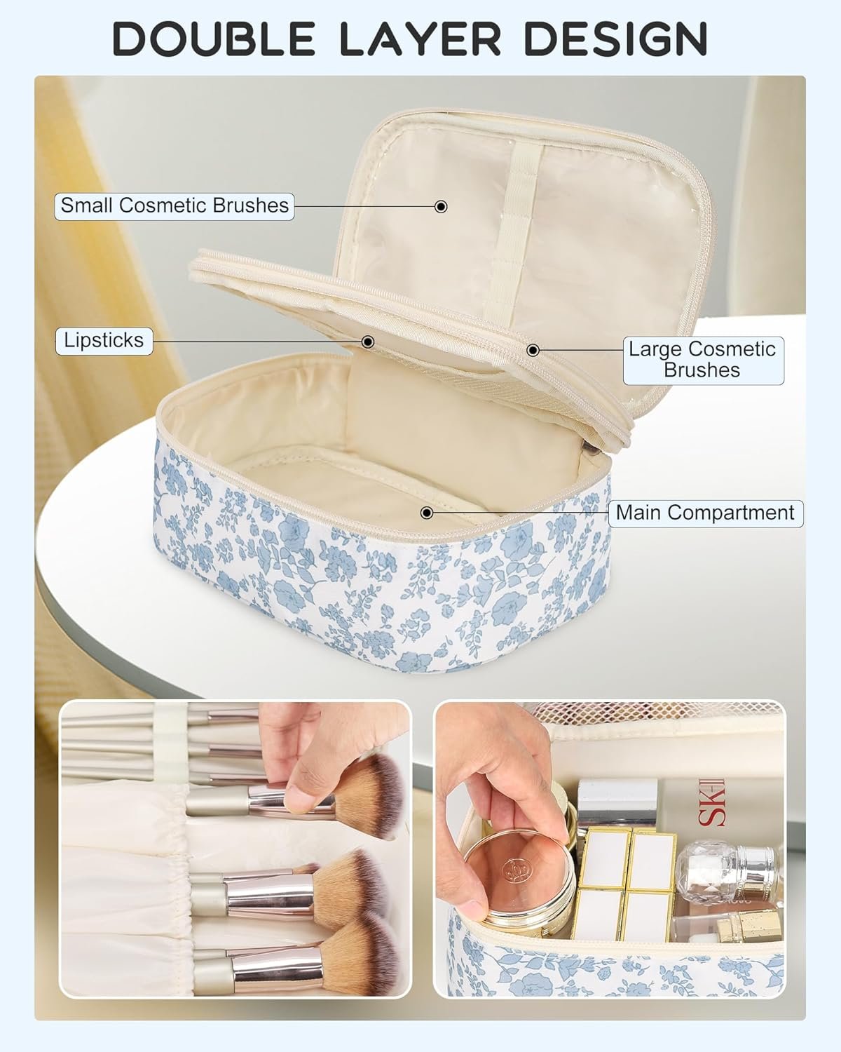 #Relavel #Travel #Makeup #Bag #Small #Floral #Cosmetic #Bag #Makeup #Brush #Compartment #Portable #Makeup #Pouch #Women #Double #Layer #Makeup #Organizer #Bag #Cute #Toiletry #Bag