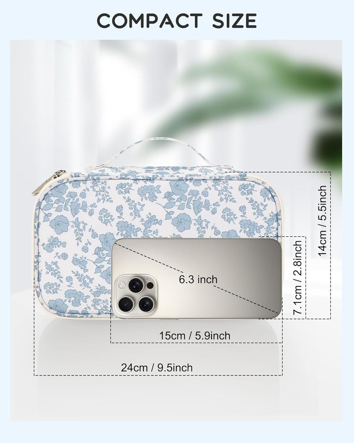 Compact Travel Makeup Bag: Size with 9.5*5.5*3.7 in, which is lightweight and portable cosmetic bag. It will organize all your beauty essentials neatly in place