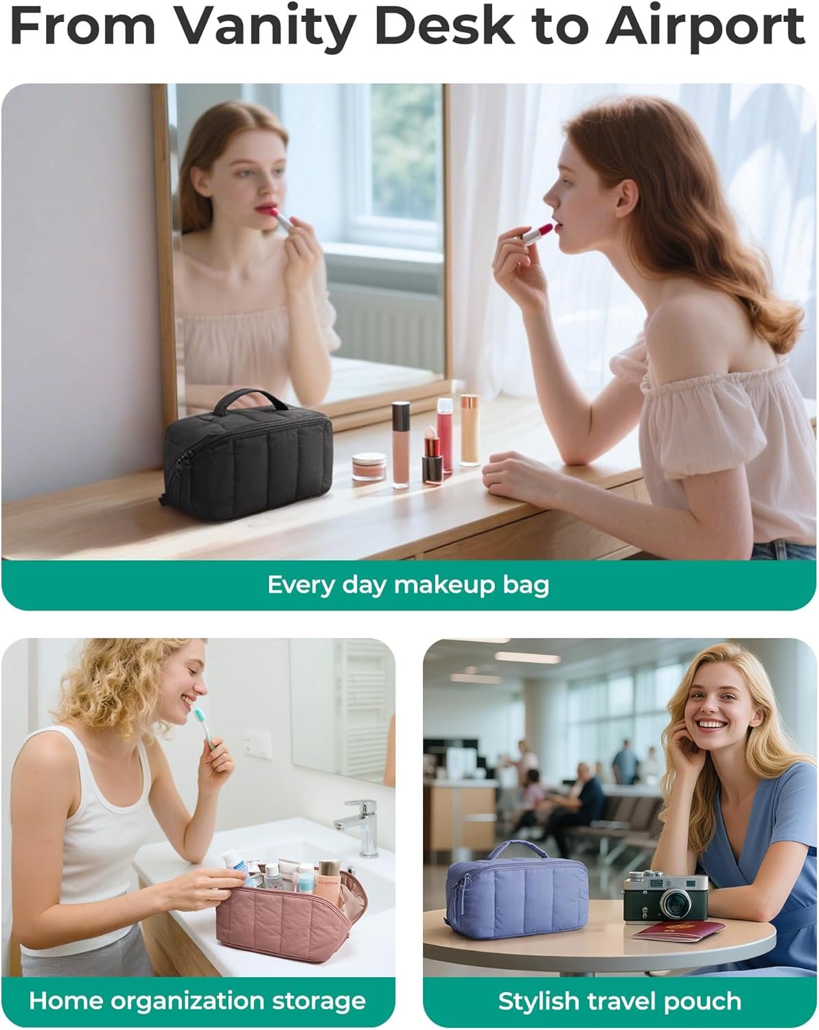 Chic Quilted Design: Elevate your style with our makeup bag’s exquisite quilted exterior, designed to be both fashionable and functional. The plush construction not only adds a touch of elegance but also ensures comfort when carrying. This stylish accessory is perfect for those who want to showcase their personality while keeping their essentials organized.