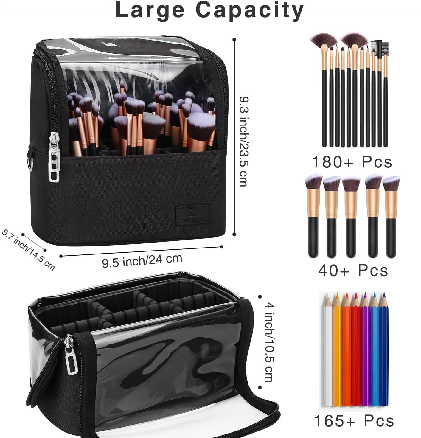 Large Capacity and Multifunction: This Makeup Brush Bag can accommodate180 pcs small size or 40 pcs large makeup brush makeup brushes, the length of the makeup brush should not exceed 9.2 inches / 23cm. It not only can place cosmetic brushes, but also cosmetics, electronics, jewelry, etc.