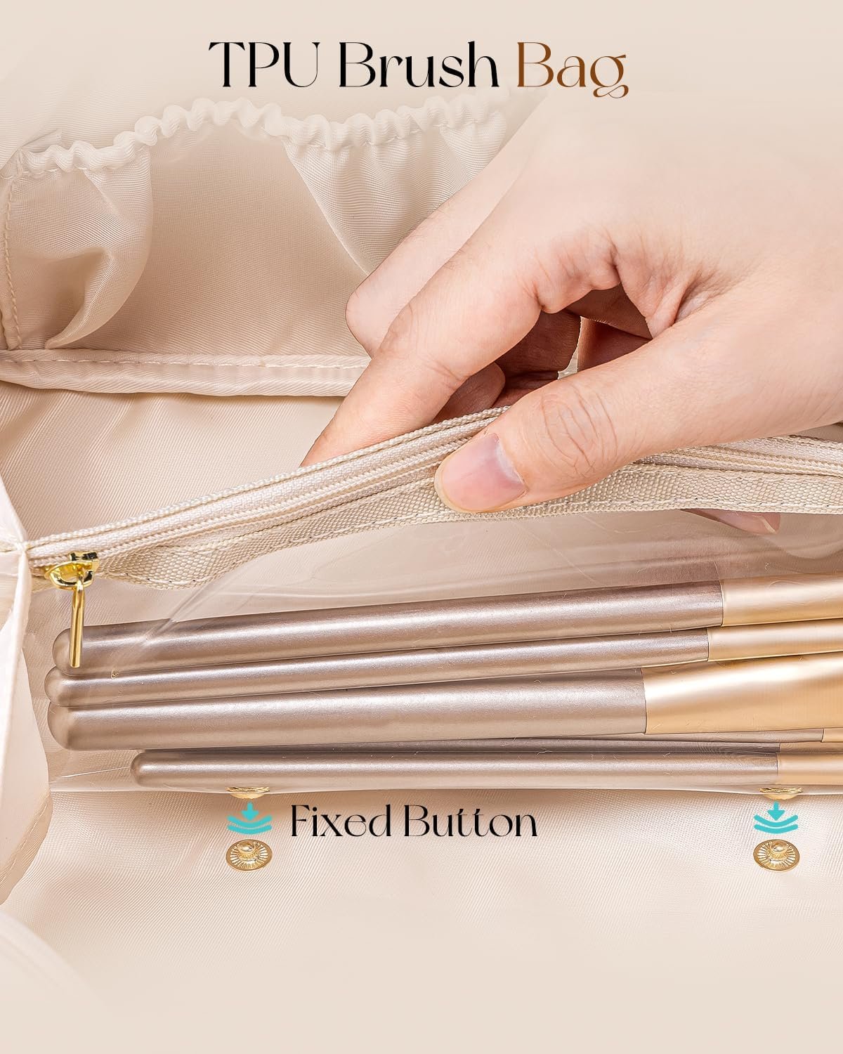 Versatile Compartment: 2 large compartments and 3 elastic pockets neatly organize your makeup, while the middle zippered TPU pocket is perfect for small items and jewelry. Extra portable pouch keeps your keep brushes neatly stored and visible