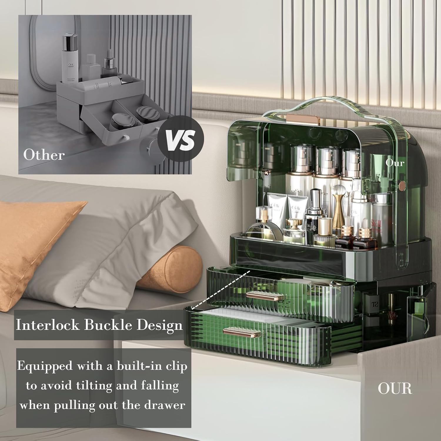 #LINFIDITE #Cosmetics #Storage #Box #Transparent #Lid #Large #Makeup #Organizer #Box #Drawers #Portable #Handle #Waterproof #Dustproof #Skincare #Display #Cases #Countertop #Bathroom #DresserGift #Clear #Green
