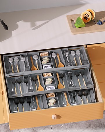 Premium ABS Material – Our kitchen drawer organizer are made of ABS material, sturdy and easy to clean, ensuring stable use for a long time and smooth pull-out, providing a versatile organizing solution for your life.