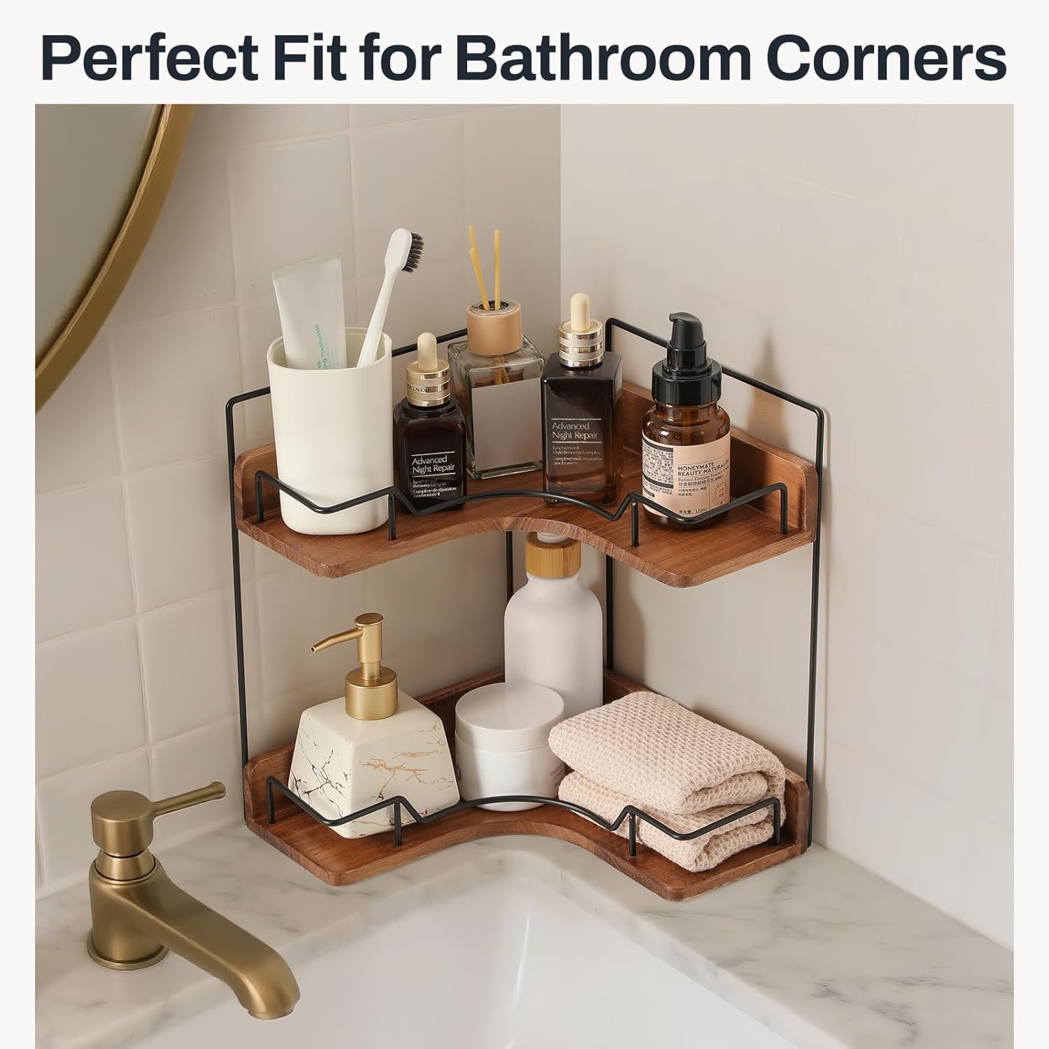 #2Tier #Bathroom #Counter #Organizer #Wooden #Corner #Shelf #Vanity #Countertop #Skincare #Makeup #Storage #Organization #Kitchen