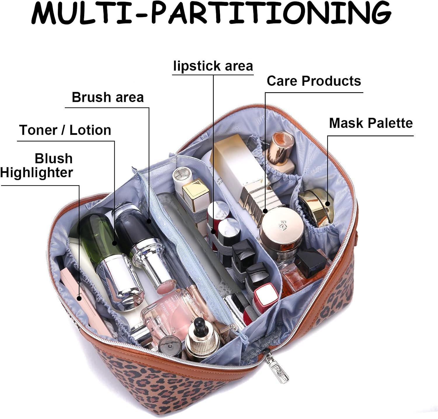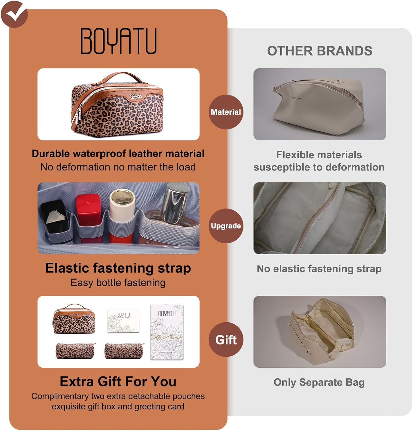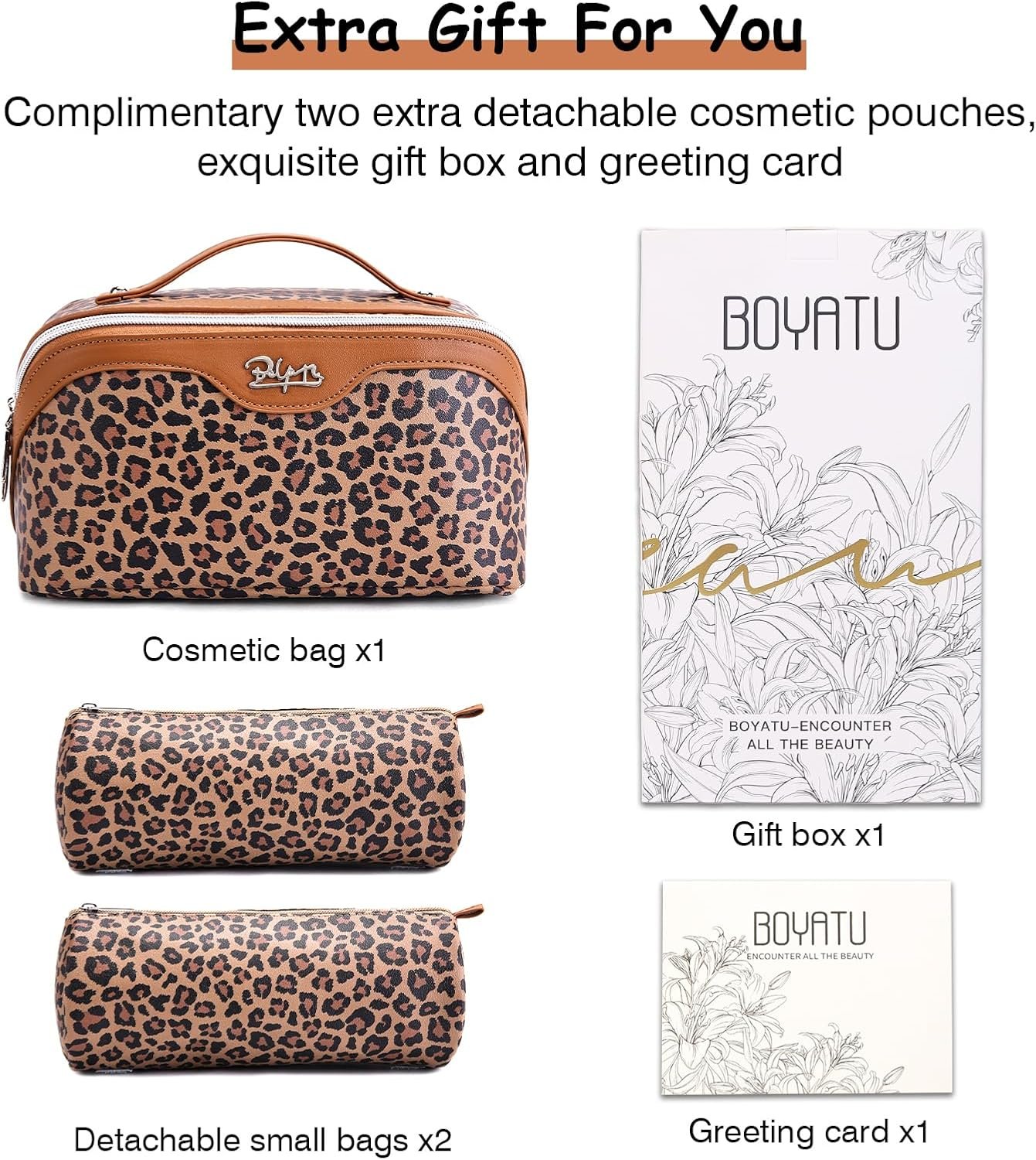 #BOYATU #Travel #Makeup #Bag #Women #Pcs #Set #Portable #Bags #Handle #Leopard #Print #Cosmetic #Bags #Comparments #Waterproof #Vegan #Leather #Toiletry #Bag #A1Brown