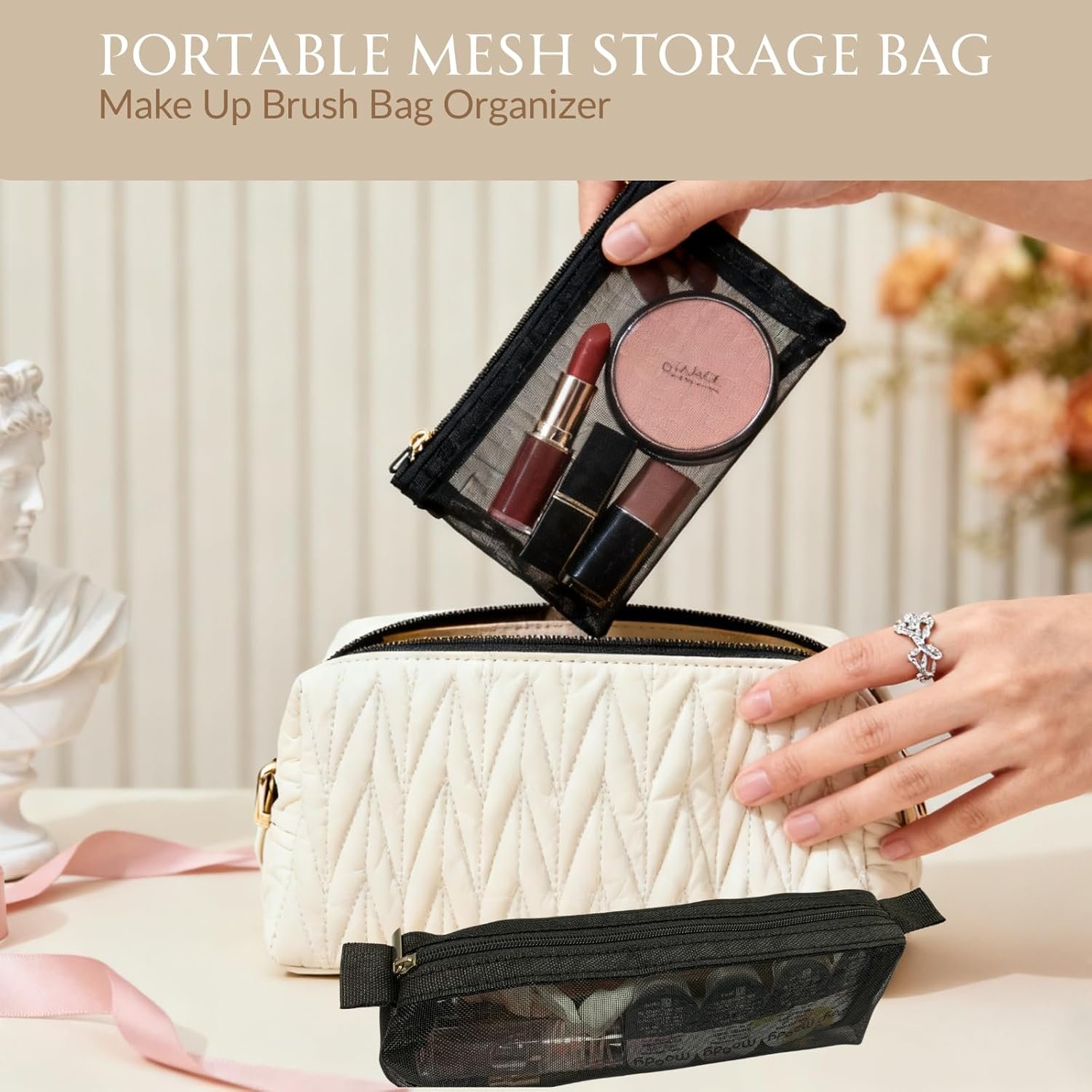 Durable & Visible Mesh Material:The travel makeup and toiletry bag is made of transparent mesh pockets let you quickly find items without rummaging; The high-quality fabric (waterproof surface) and reinforced stitching ensure long-lasting use, protecting your products from spills and scratches.
