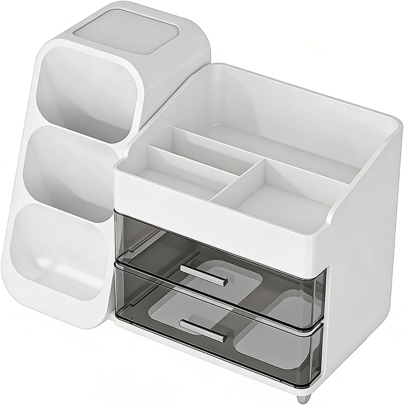 Clear Drawers with Smooth Handles: Multiple compartments and transparent drawers allow easy visibility of items. The drawers come with elegant handles for smooth operation.