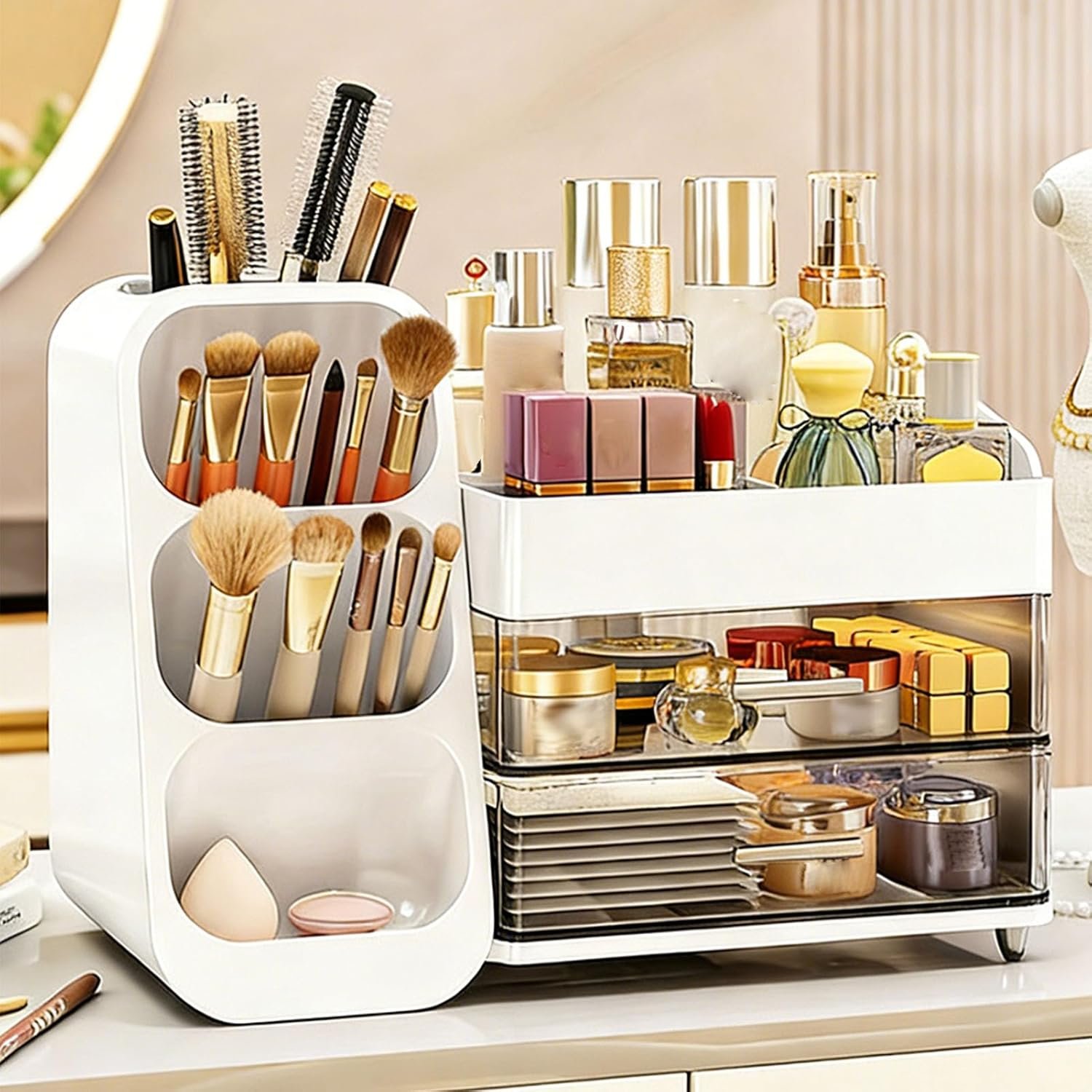 #Sorandy #Makeup #Organizer #Drawers #Plastic #Cosmetic #Display #Case #Skincare #Organizer #Brush #Holder #Bedroom #Vanity #Bathroom #Countertop #Office #Desk #White