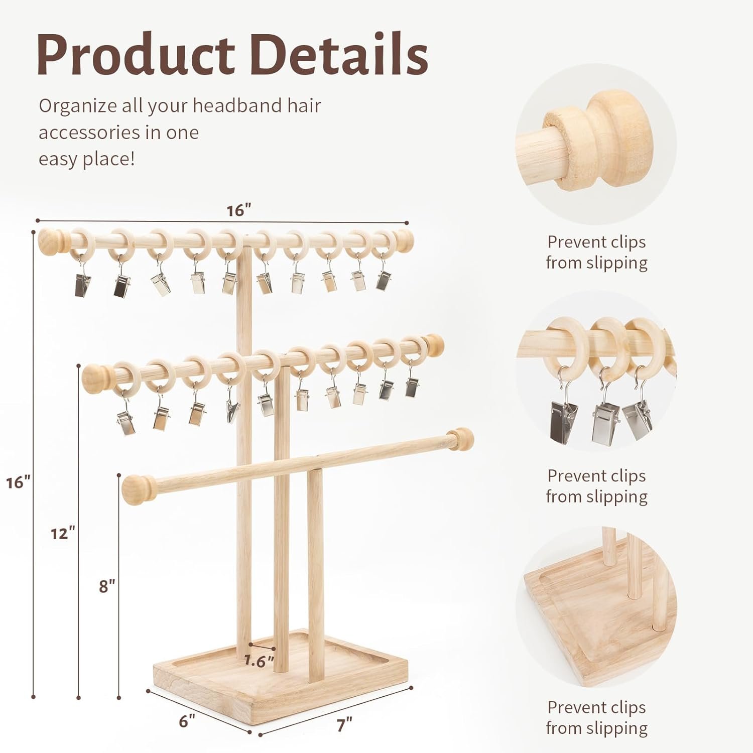 Excellent material : The headband holder organizer is made of pure natural beech wood, which is hard in texture, good in pressure resistance, strong in bearing capacity, not easy to deform when dry, durable, and can accompany your baby for a lifetime.