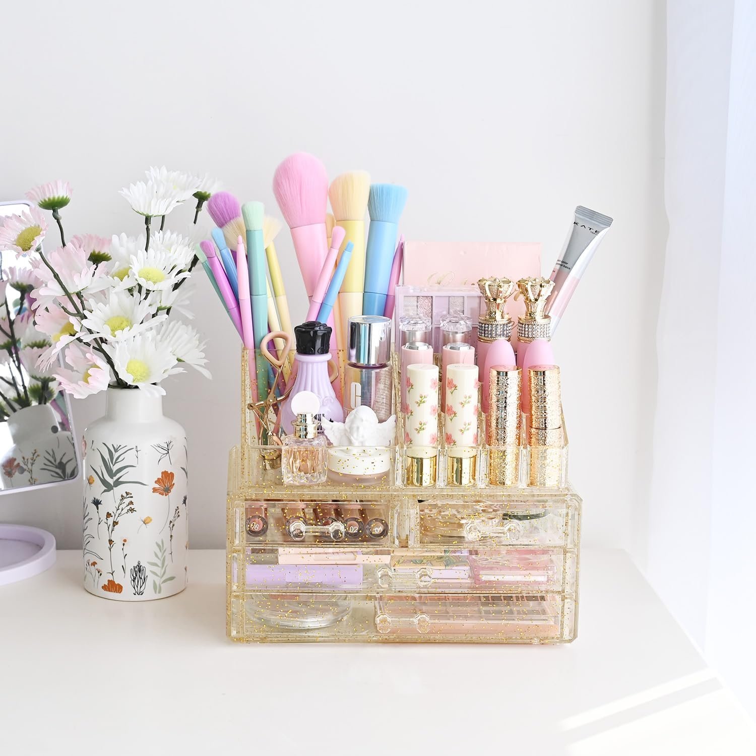 #Ikee #Design #Acrylic #Makeup #Organizer #Drawers #Removable #Top #Lipstick #Holders #Cosmetics #Organizer #Skincare #Accessories #Lip #Gloss #Vanity #Bathroom #Countertop #Gold #Glitter