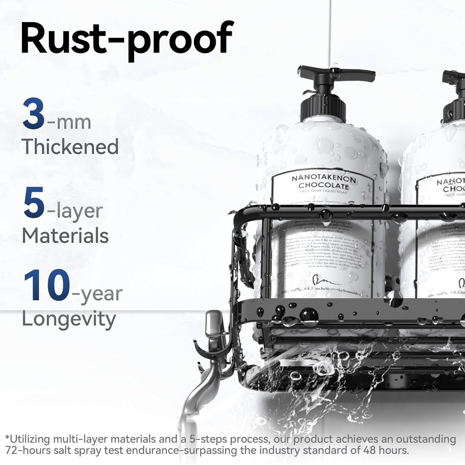304 Grade Stainless Steel: Stop replacing rusty shower racks. Our advanced coating technology and triple-strength steel wire gives this shower shelf for inside shower 2X the lifespan of basic models. It’s the definitive shower organizer and bathroom shelf solution, engineered to stay pristine through years of daily steam and spray