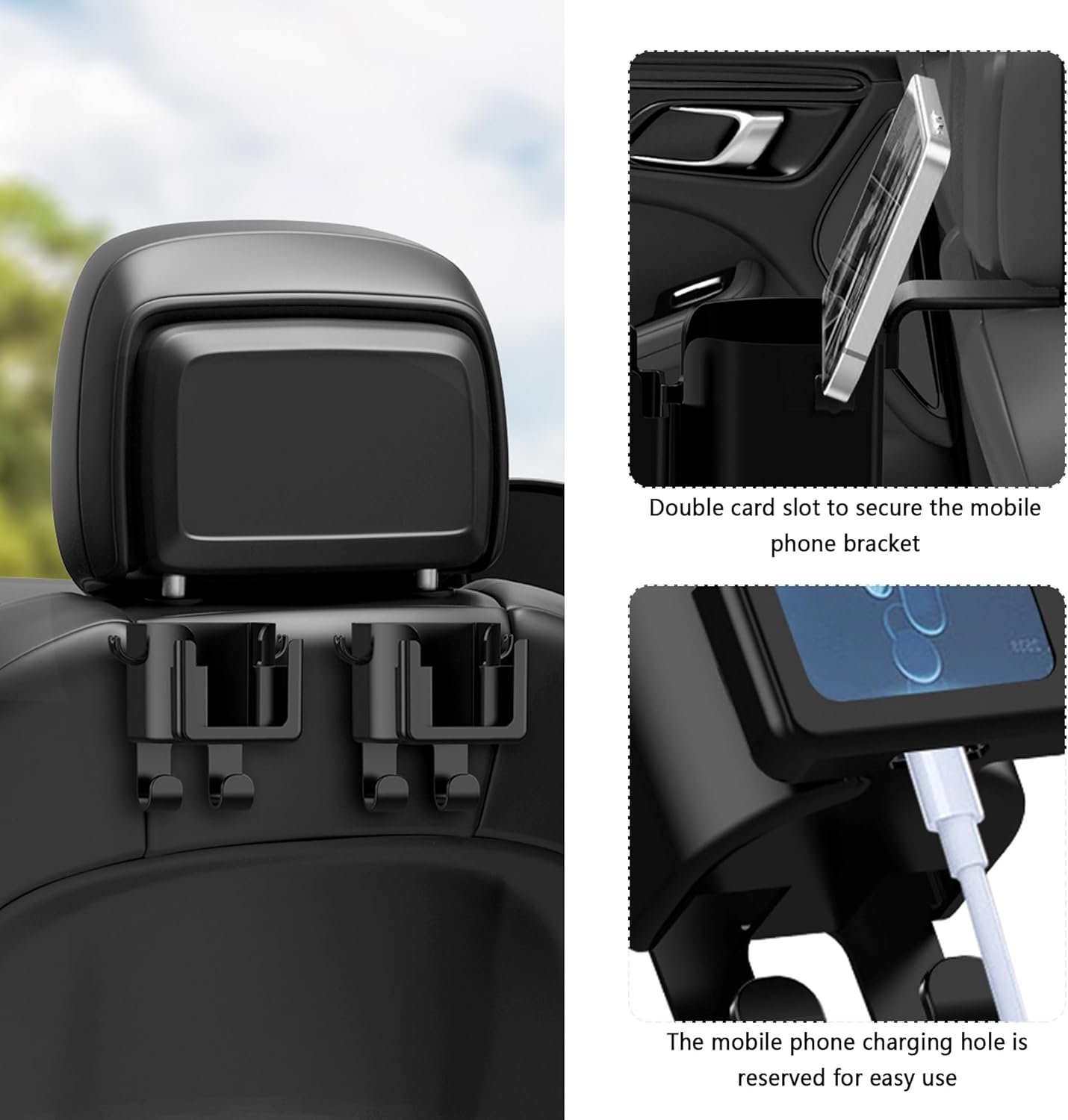✨ MULTIFUNCTIONAL DESIGN: This car cup holder adopts the multifunctional design of cup holder + cell phone holder + hook, convenient and practical. The bottom of the cell phone holder is also reserved for cell phone charging holes, the humanized design allows your family and friends in the back seat to enjoy the pleasure of catching up on TV shows while drinking at any time!