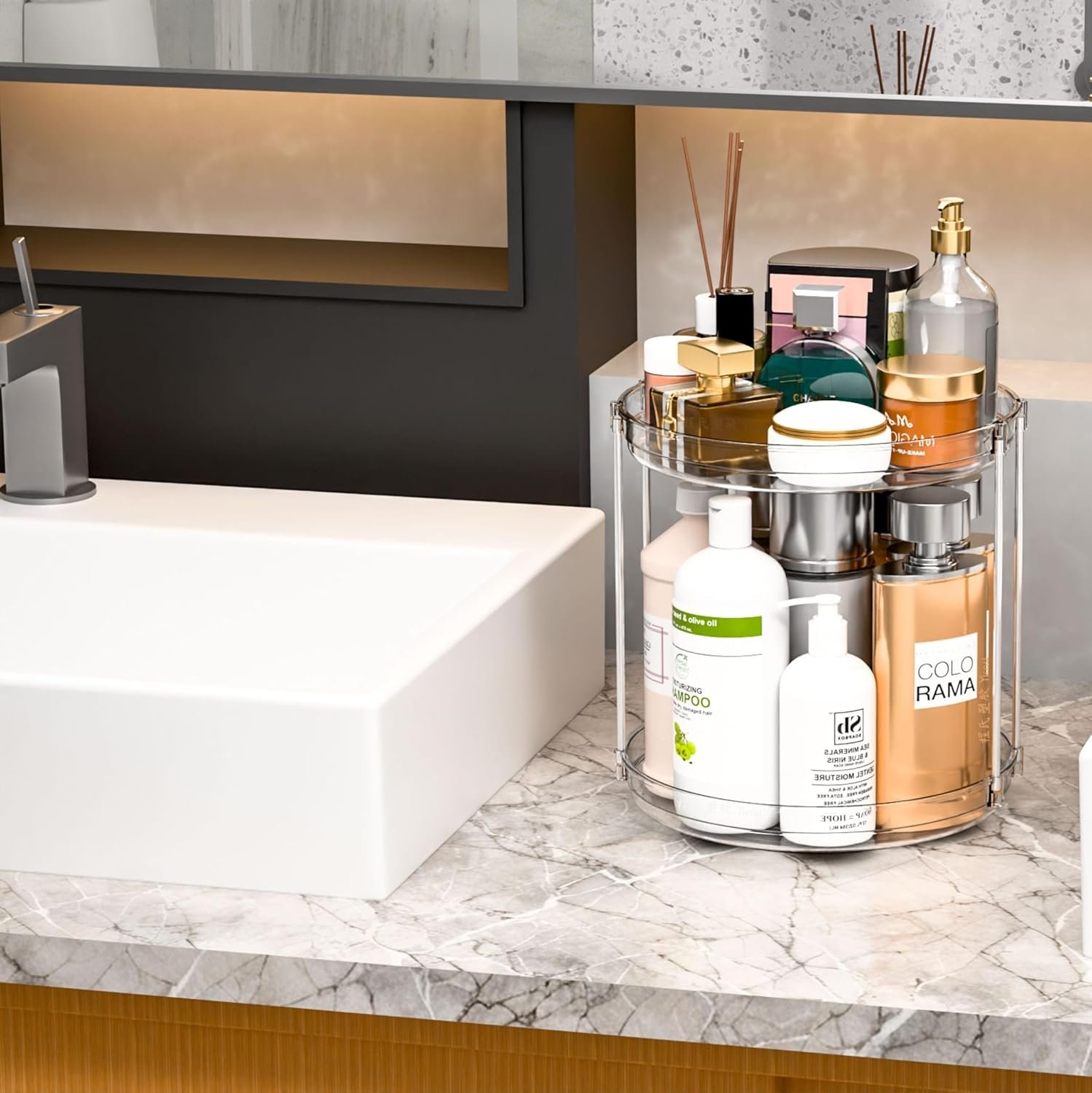 【Easy to Assemble, No Tools Required】Our lazy susan organizer is simple for quick and hassle-free setup, allowing you to start organizing in minutes. Ideal as a lazy susan organizer for cabinet or a vanity organizer