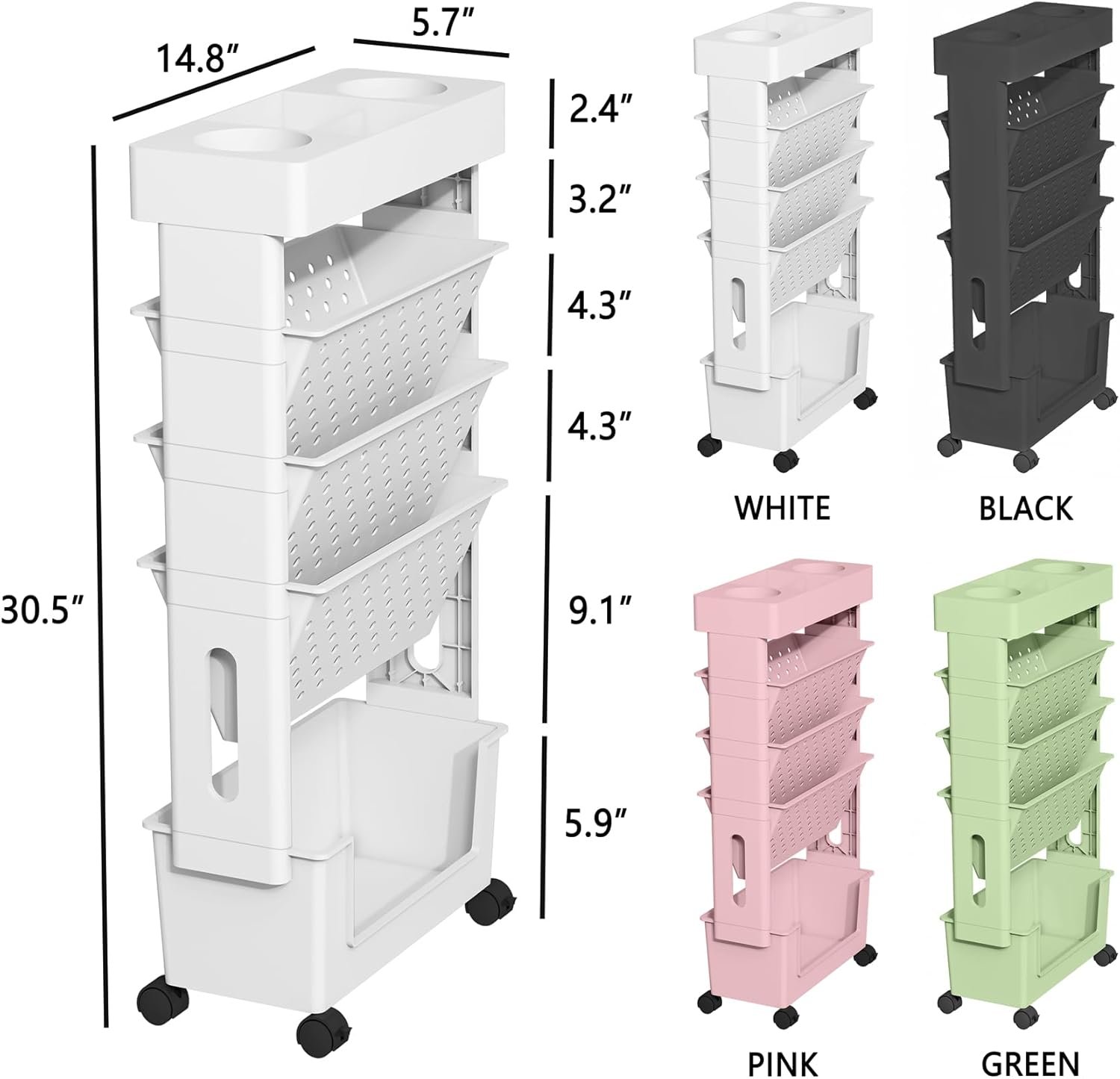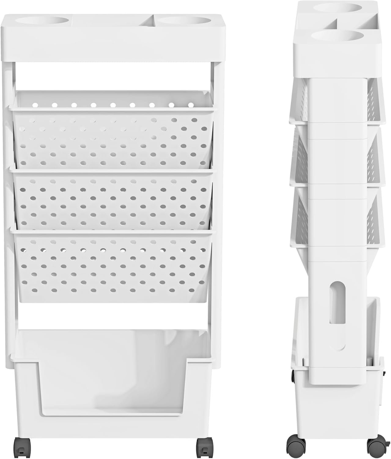 【Slim and Spacious Storage】 At 5.7 inches wide, this moveable paper cart can fit in even the narrowest of spaces. Despite its slim profile, it still offers ample storage for all your documents and files. Maximize your storage with this functional cart!