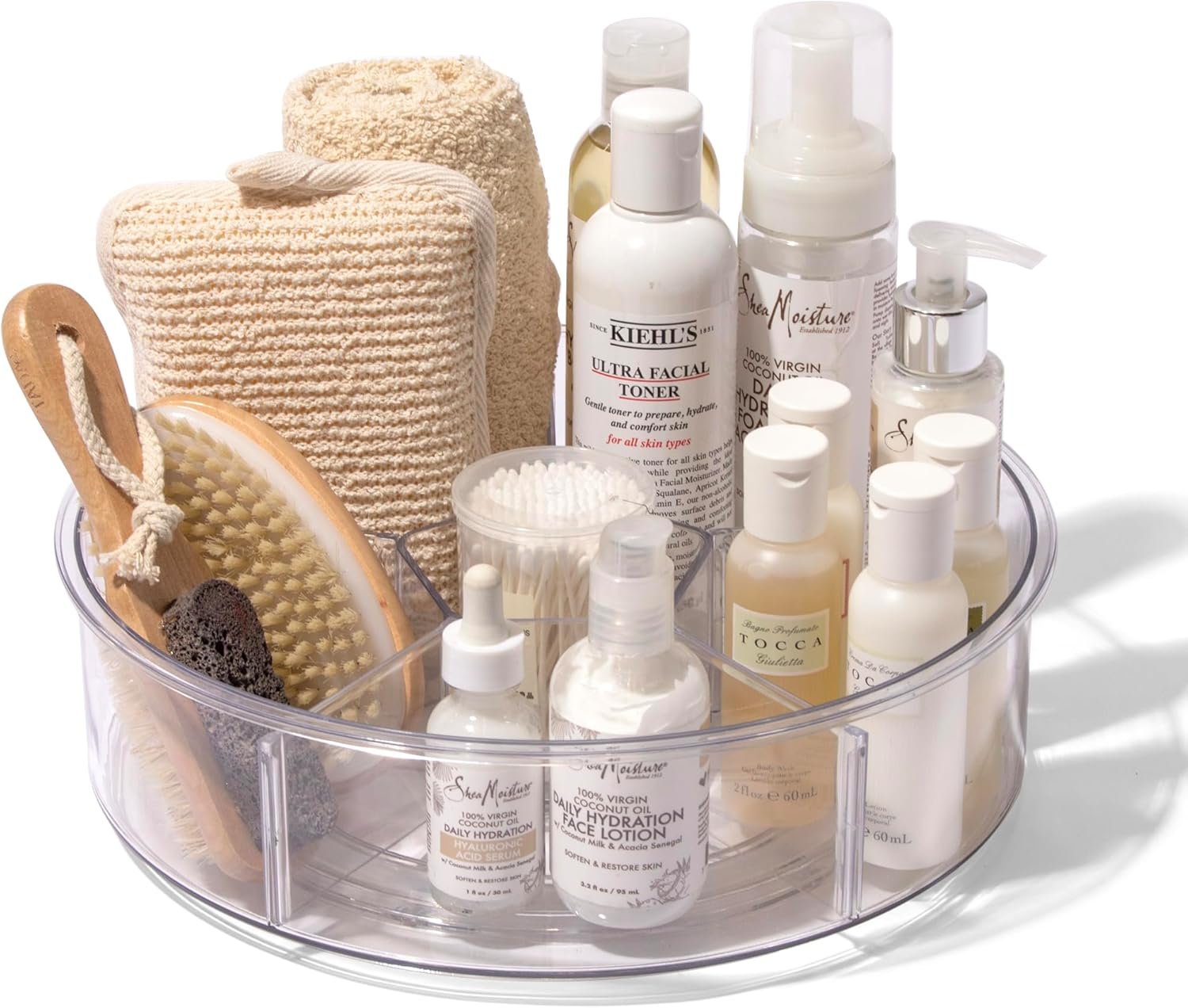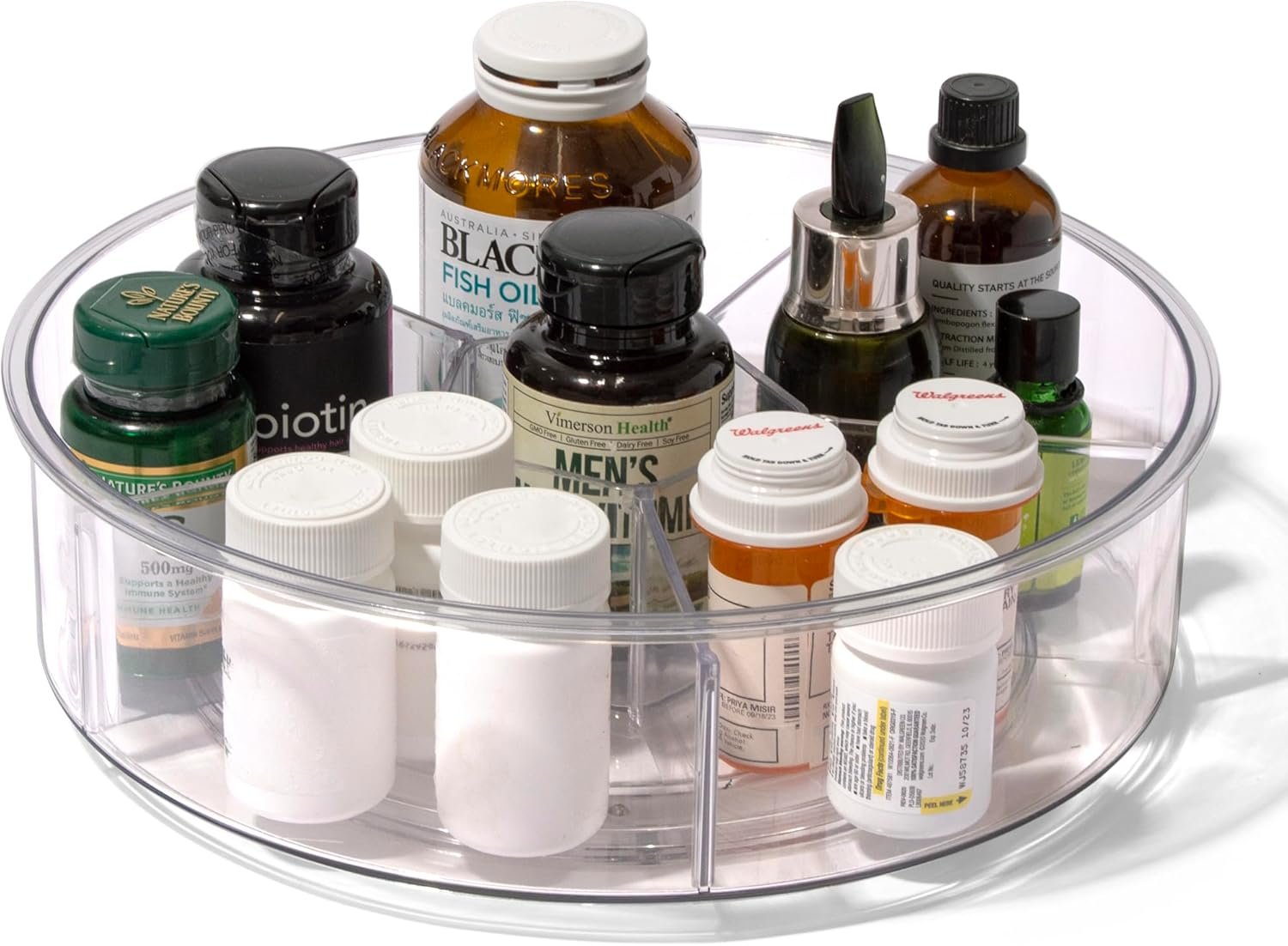 Durable Clear Material: Our round clear organizers are constructed with BPA-free, premium-quality plastic for an odor-free finish and are incredibly easy to clean with mild soap and water. To maintain their integrity, we recommend avoiding dishwasher cleaning. Keep your items organized and in plain sight with a simple yet stylish design.