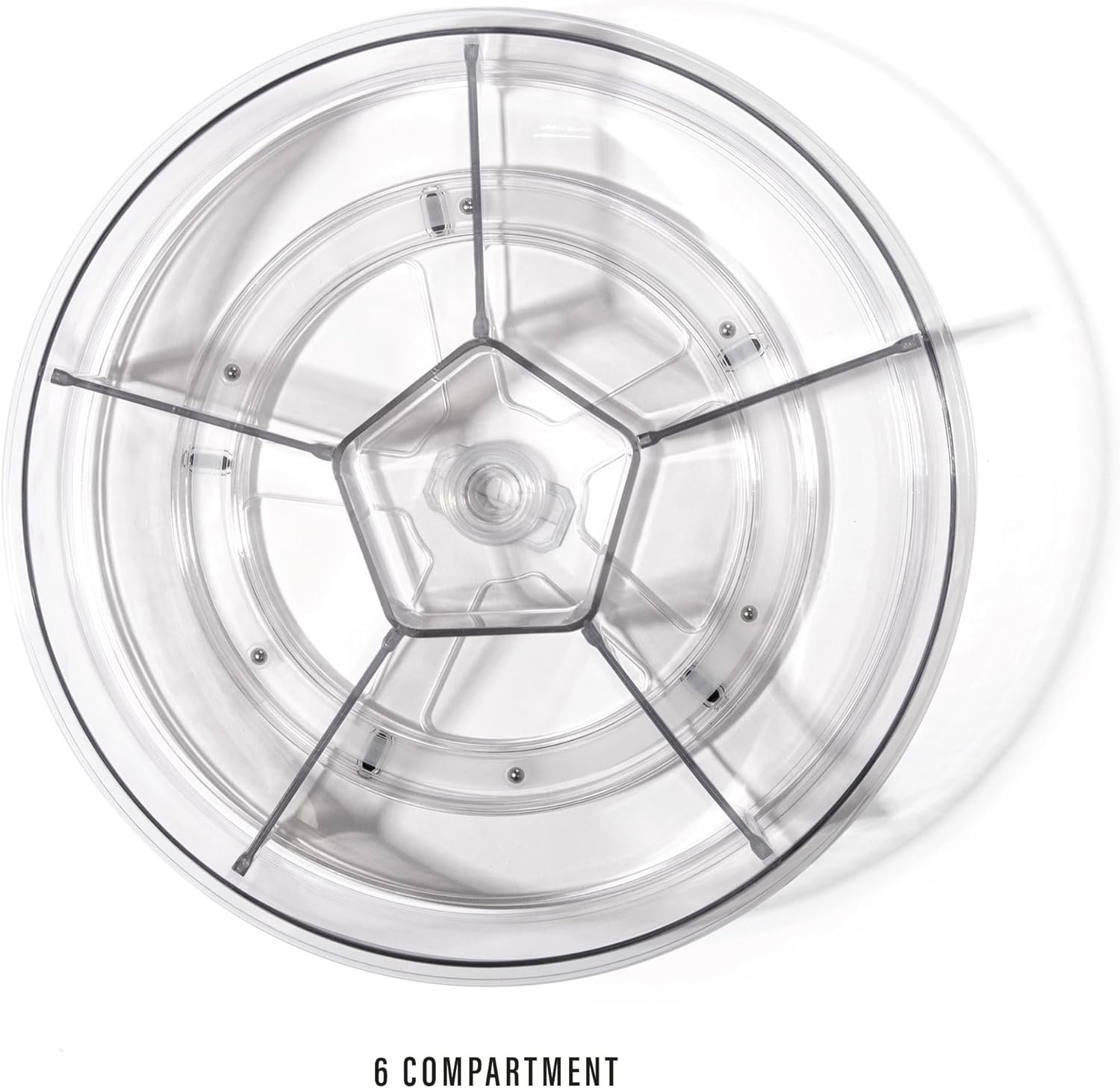Private Label BINO Plastic Round Turntable Organizer with 6 Compartments – Clear | Spinning Divided Turntable Container | Rotating Organizer Storage for Bottle Condiments Fridge Kitchen Counter Pantry Bathroom ODM Support