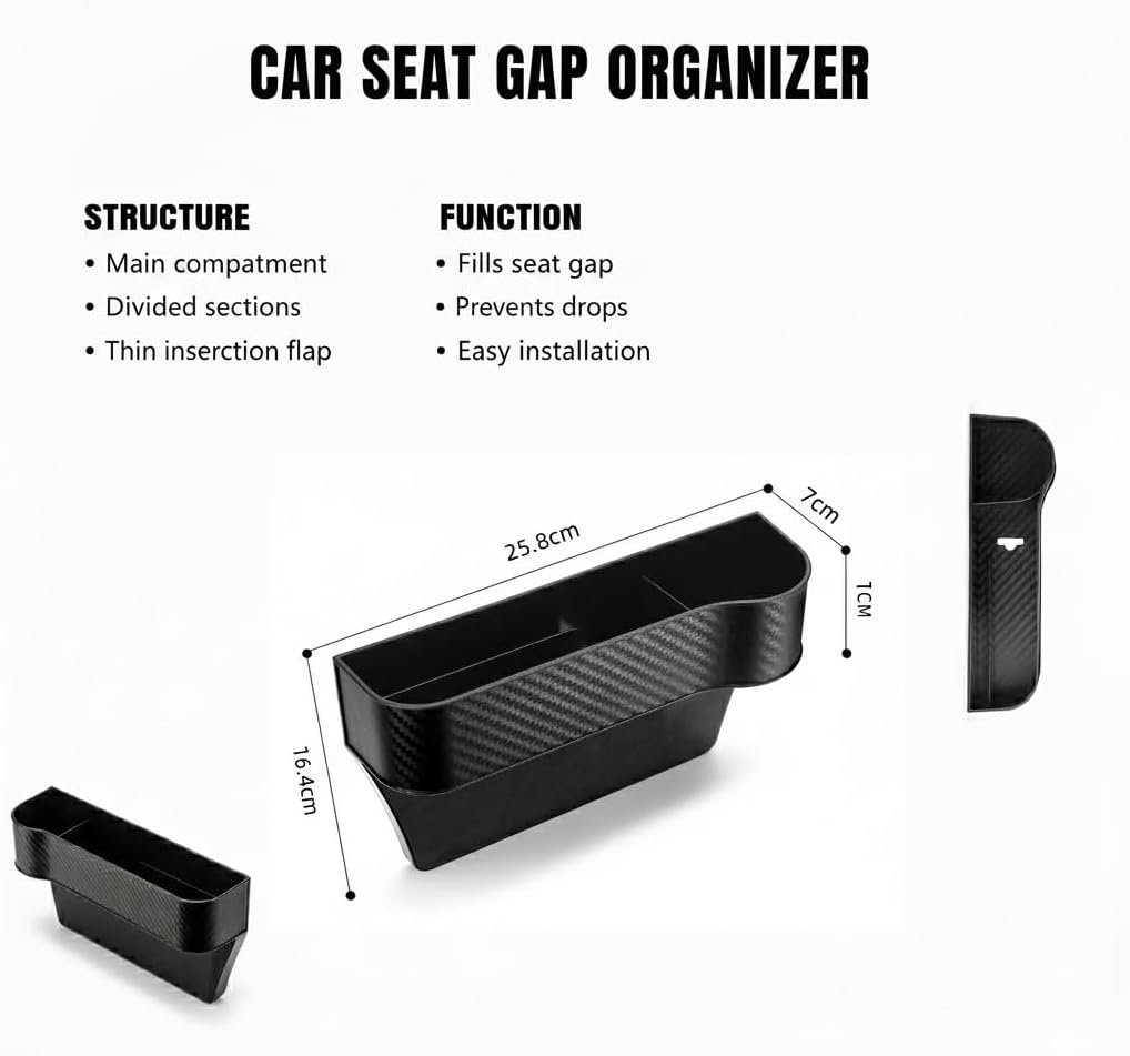 No ruler? Use 2-3 bank cards (each ~0.76mm thick) to gauge the gap â if they fit snugly, the organizer will too. Some models (e.g., Honda Civic 2020+, Mazda CX-5) may require removing seat side trim for a seamless fit.