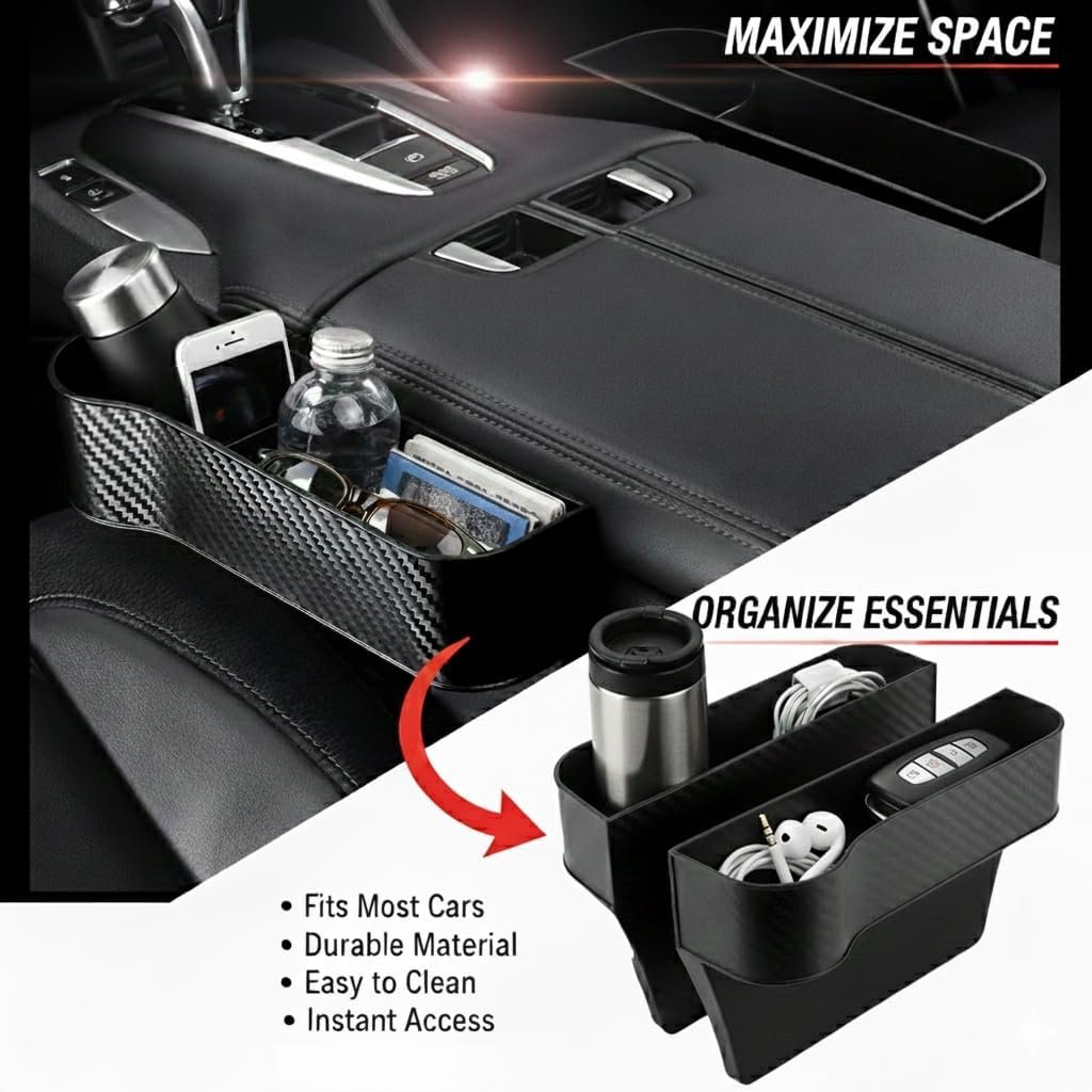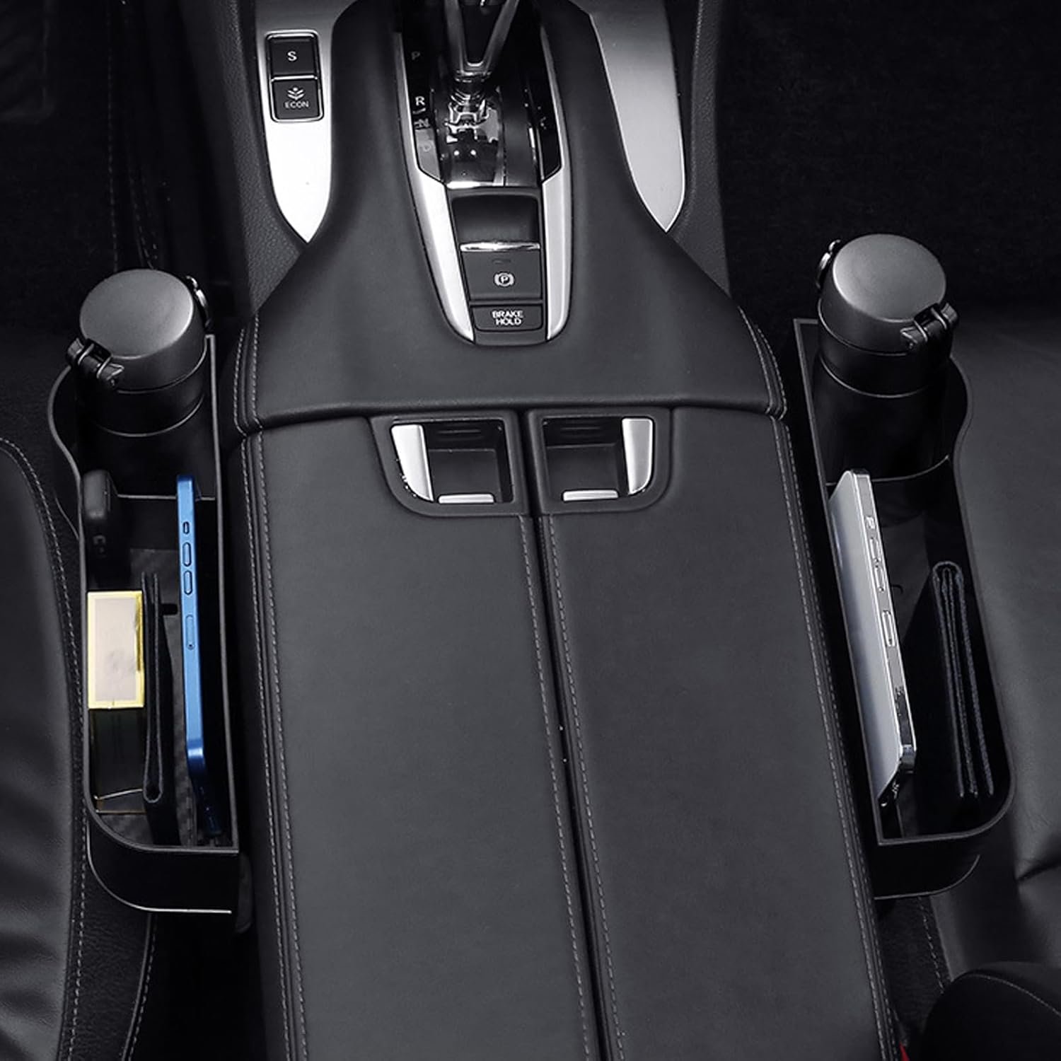 1. ăExtra Storage & Reduce Clutteră Say goodbye to messy car seats! This 2-pack seat gap organizer fills the empty space between your front seat and center console, providing extra storage for phones, keys, sunglasses, pens, and small items. The built-in cup holder fits most water bottles (up to 2.95 inches diameter) â keep your drinks, snacks, and essentials within easy reach while driving.