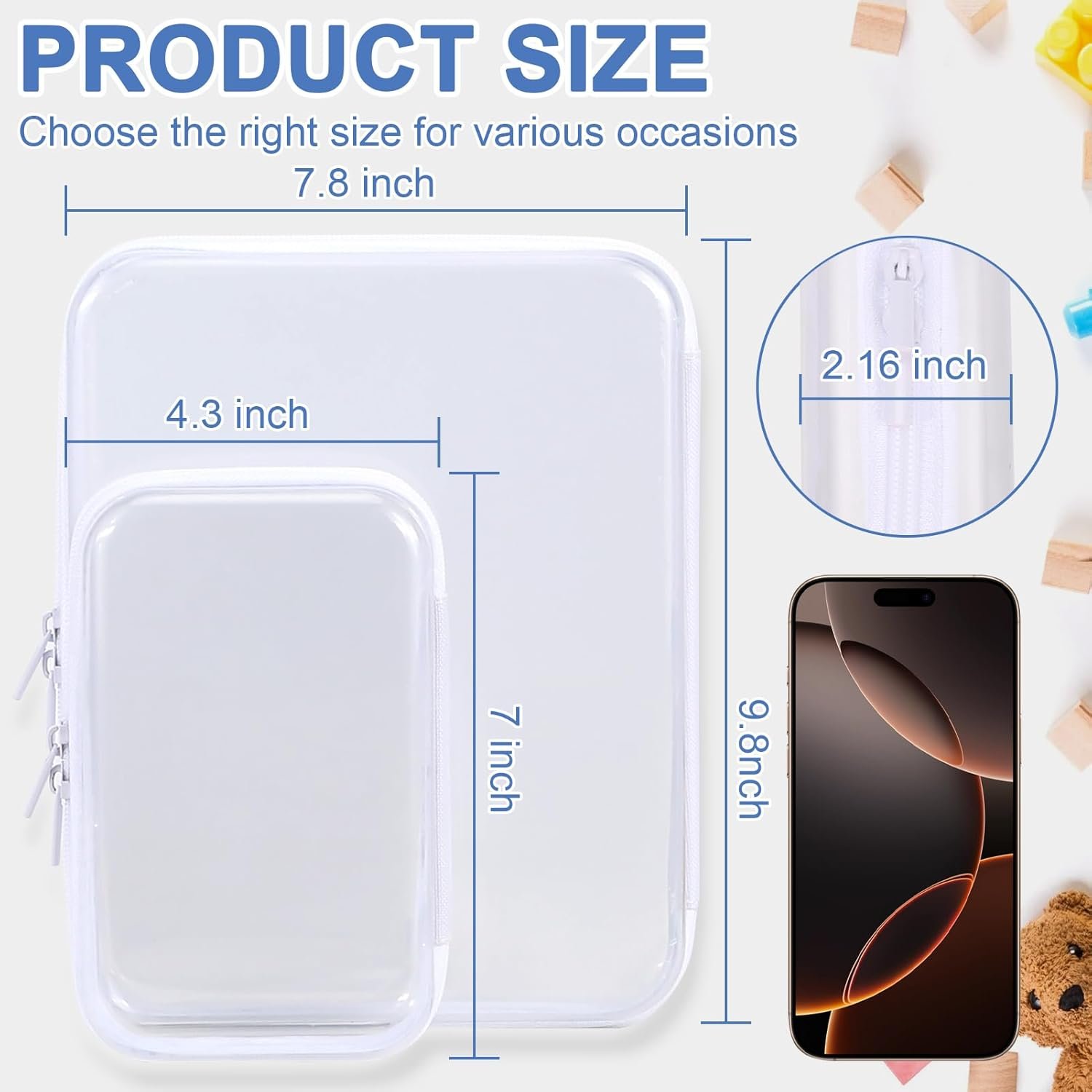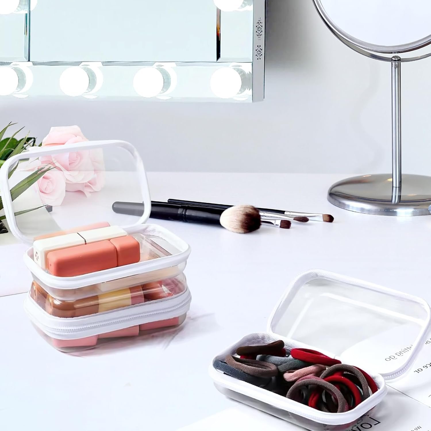 Secure Zipper Closure : Clear zipper pouches keeps small items like makeup brushes, lipsticks, eyeshadows, skincare minis and accessories safely stored