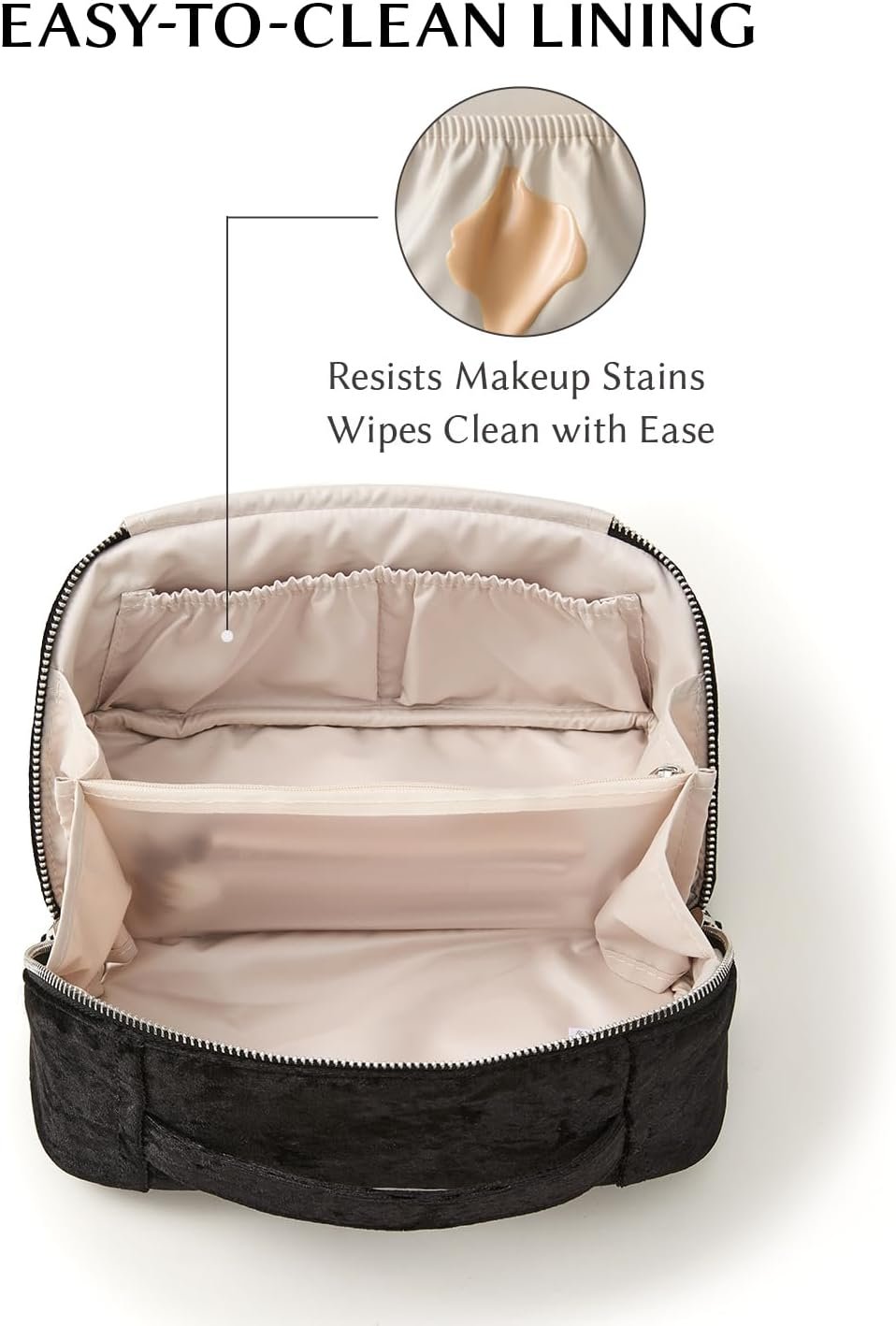 #EACHY #Travel #Makeup #BagVelvet #Cosmetic #Bag #WomenPortable #180WideOpen #Flat #Toiletry #BagLarge #Capacity #Makeup #Pouch #Organizer #Divider #Handle