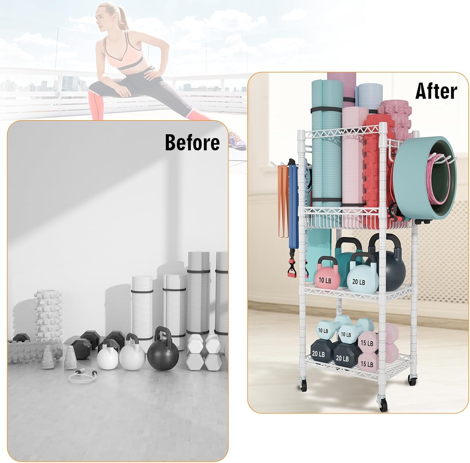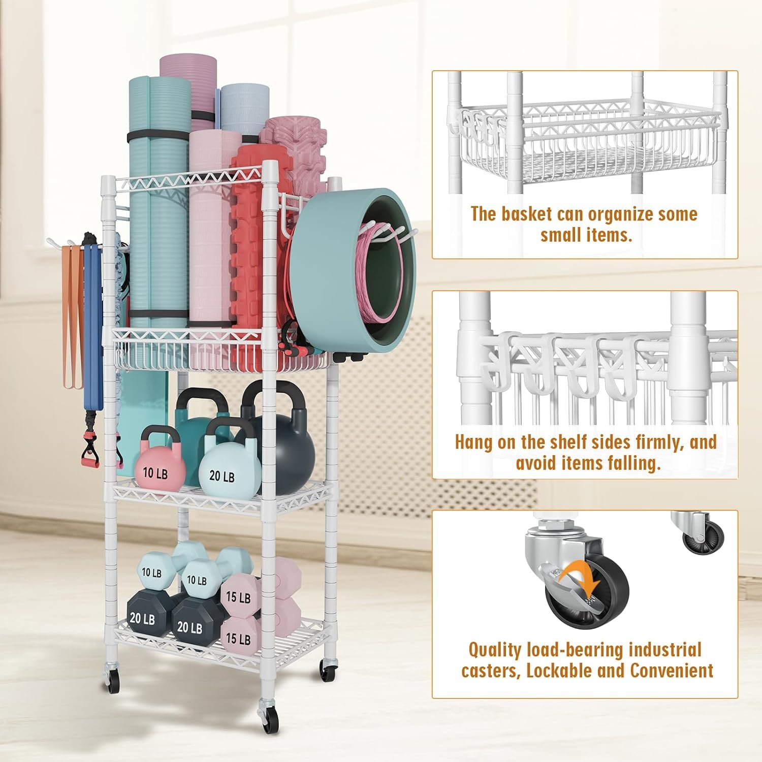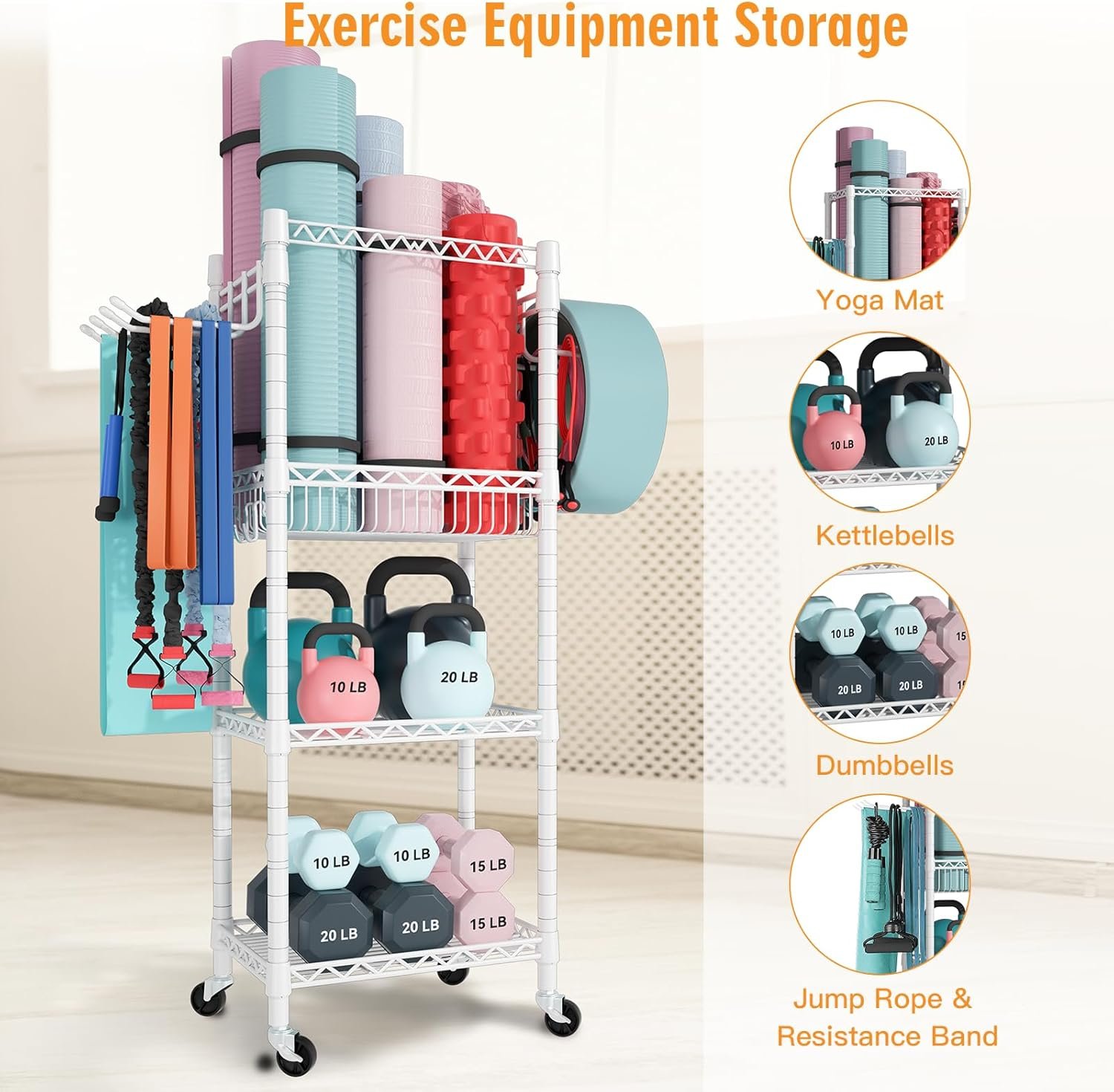 #FUTASSI #Home #Gym #Storage #Tiers #Workout #Equipment #Organizer #Wheels #Yoga #Mats #Foam #Roller #Dumbbells #Kettlebells #Resistance #Bands