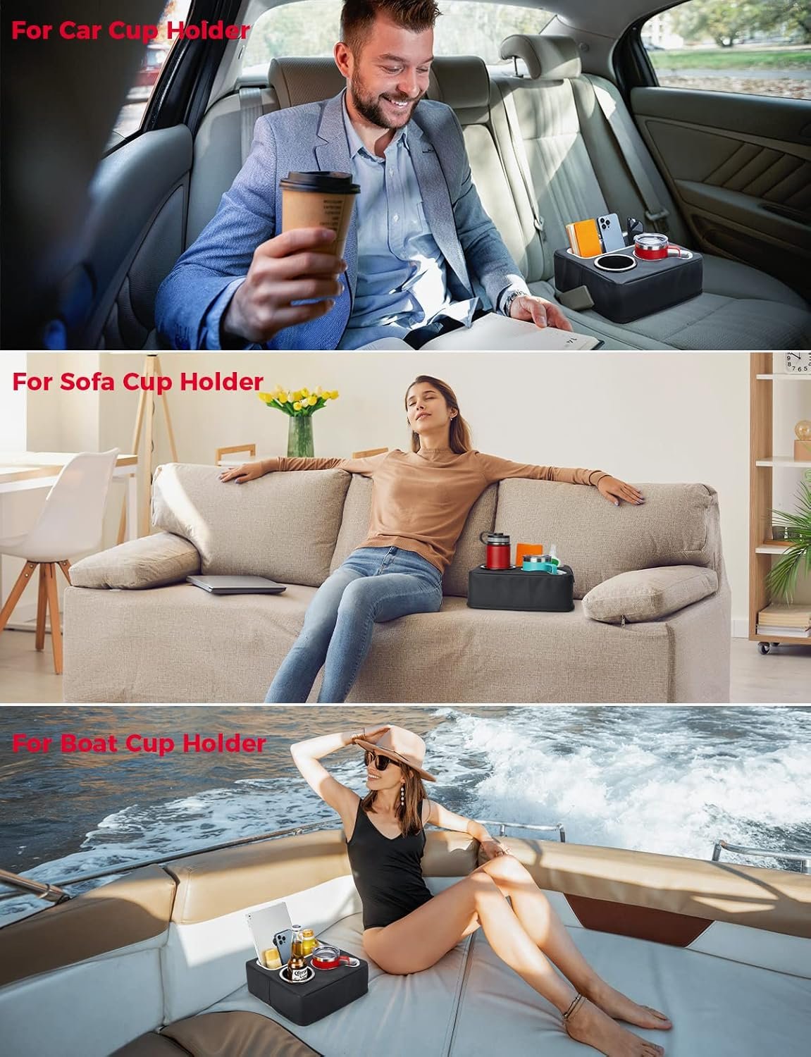 【Easy to Installation & Package Include】The weighted vinyl flap secures the bed cup holder to boat seats & car backseats by tucking the flap between the seat and back cushions, providing stability during rough waves or journeys. The package includes 1 cup holder expander, 1 water cup holder, and 2 acrylic partitions (2mm thick) for added convenience.