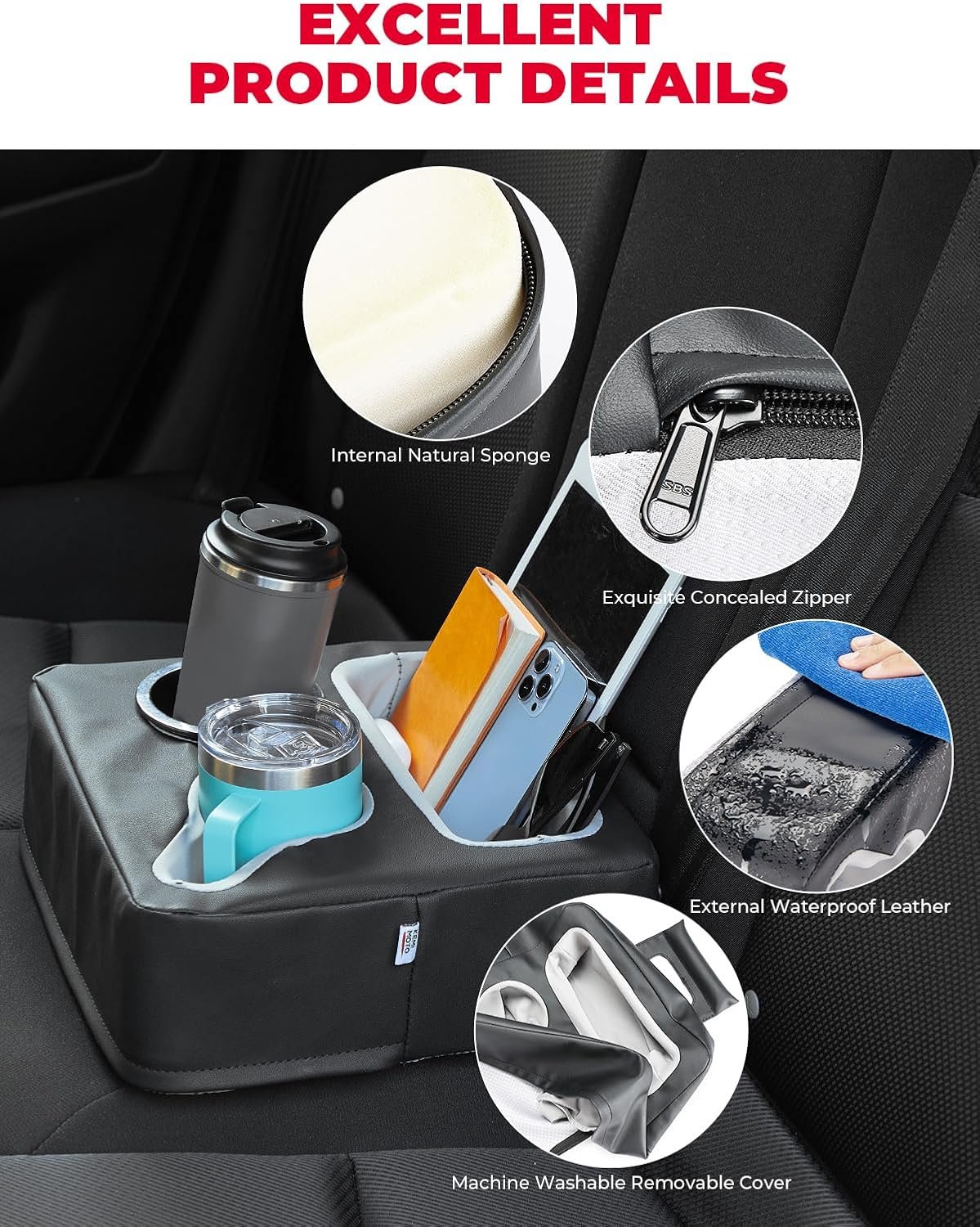 【Wipe Clean】Our car cup holder is crafted from long-lasting PU leather, offering not only effortless cleaning but also exceptional stain, sweat, and odor resistance. This ensures a comfortable and pristine cup-holding experience for you.