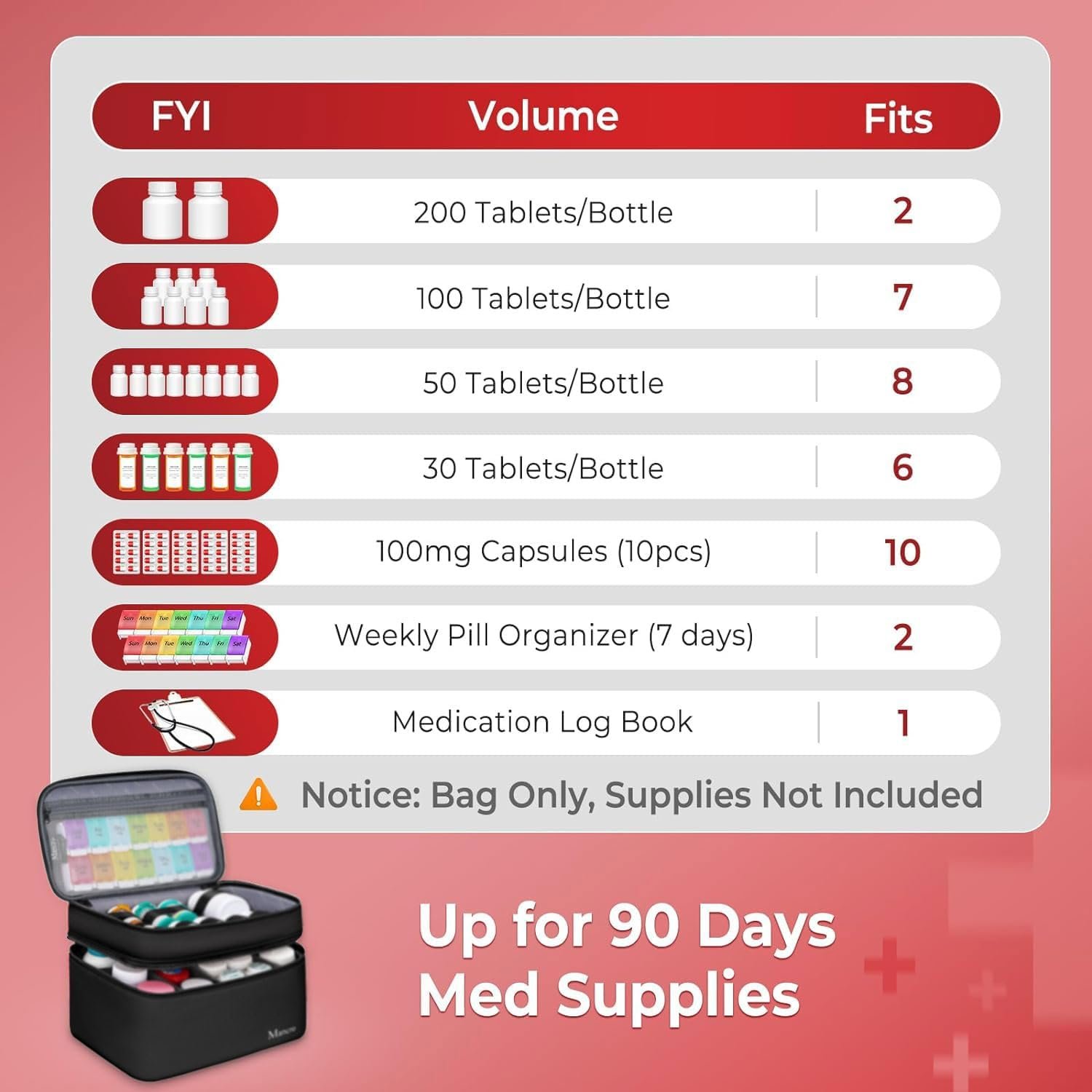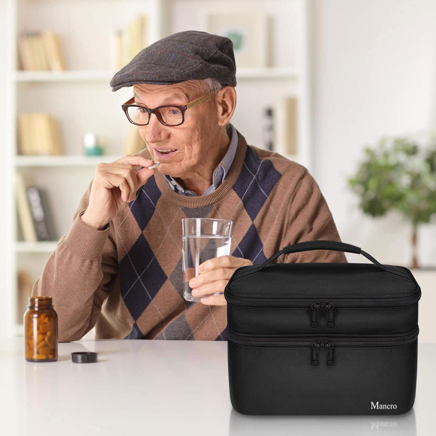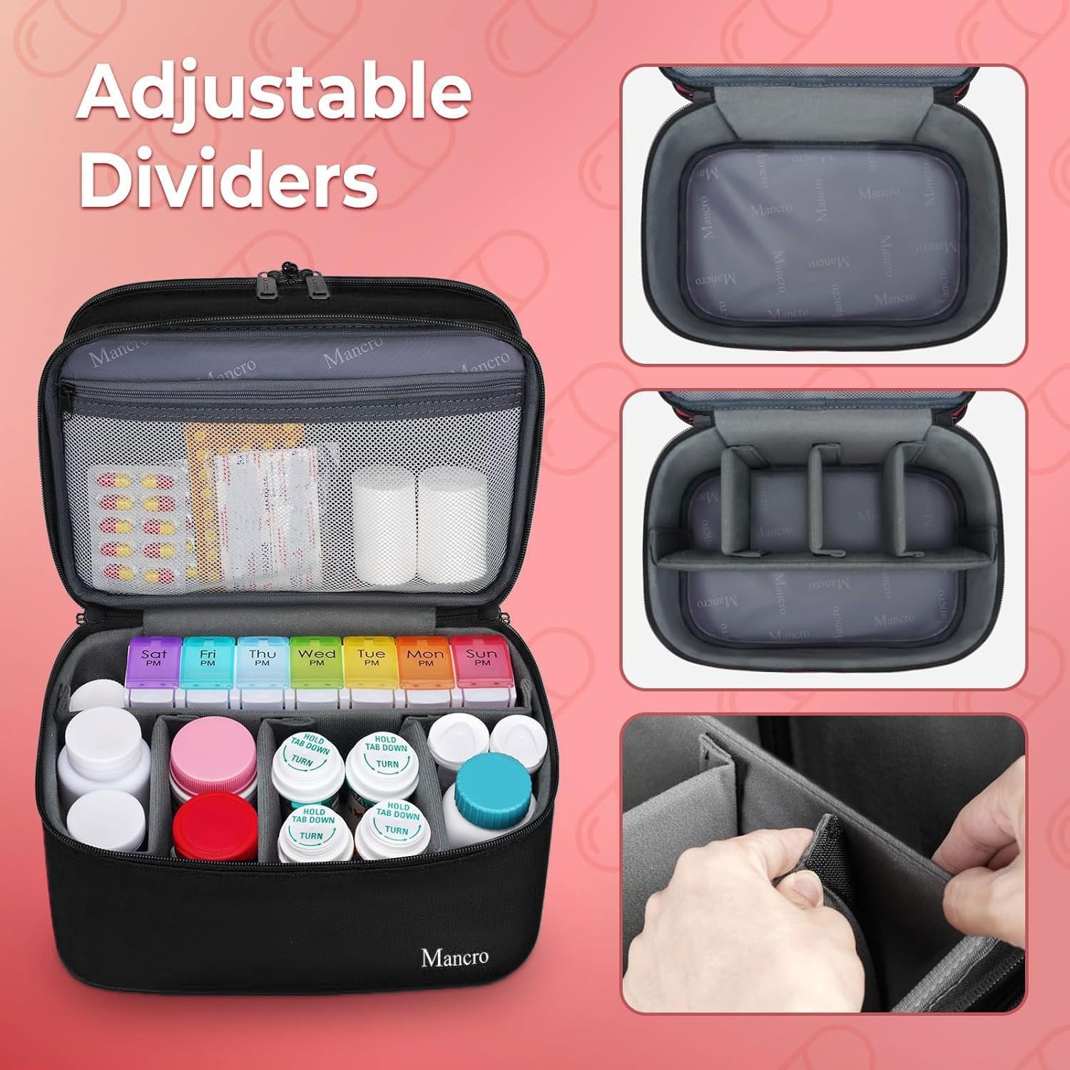 #Mancro #Dual #Layers #Medicine #Organizer #Bag #Pill #Bottle #Organizer #Storage #Lockable #Zipper #Medication #Travel #Bag #Pills #Vitamins #Medical #Supplies #Home #Storage #Black