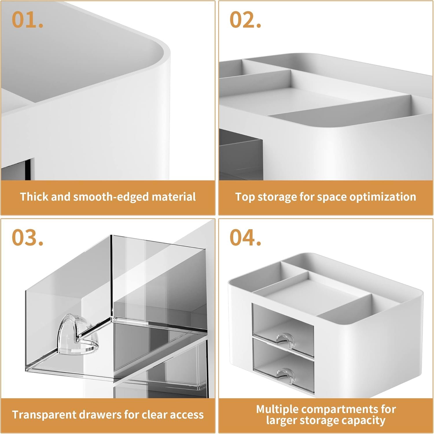 【Premium Material】This storage drawer organizer is crafted from durable ABS plastic, ensuring its strength and solidity for long-term use. The smooth operation of its drawers allows for easy opening and closing. Additionally, its waterproof design makes it effortless to clean, maintaining its pristine appearance over time