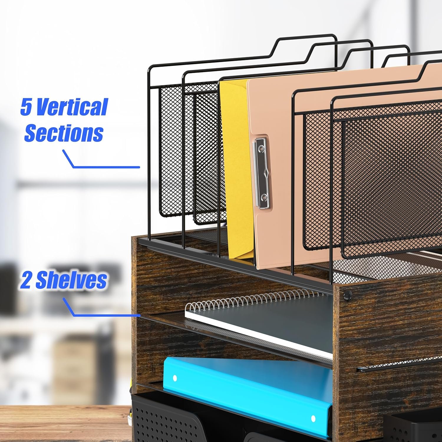 5 VERTICAL FILE SECTIONS – Contains five upright compartments, each measuring 2.25 inches wide. These slots are sized to support file folders, binders, textbooks, and catalogs in an upright position.