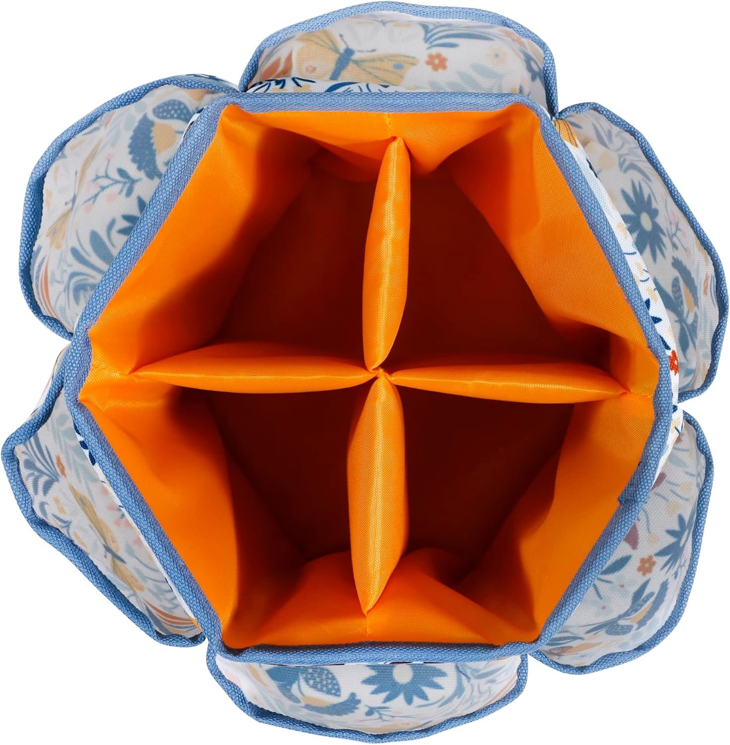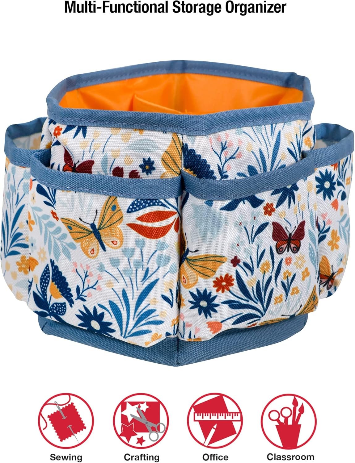 Constructed from 100% polyester fabric in a floral butterfly print with orange detailing, this lightweight yet durable storage organizer is easy to clean and makes organizing your sewing essentials a breeze
