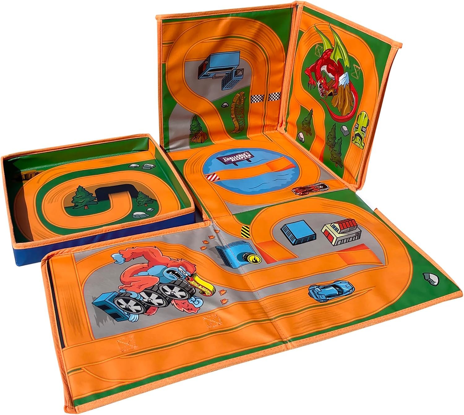 ZIPBIN HOTWHEELS: 300 CAR STORAGE CUBE – Where can you store and play with all your Hot Wheels vehicles in one place, the Hot Wheels Zip Bin 300 Car Cube & Playmat of course! This awesome bin doubles as a storage for Hot Wheels cars and accessories, then unzips to unveil a super fun playmat where boys can live out their driving dreams. Doubles as a storage container and a flat surface for creative play. Includes sturdy lid and handles. Made from the highest-quality, durable materials. Can be easily cleaned witha damp cloth. Keep all your Hot Wheels things together in this great zipbin! Bin measures 11.3″x11.3×11.3″ and Mat dimensions measure 36″x 36″. Ages 3+.
