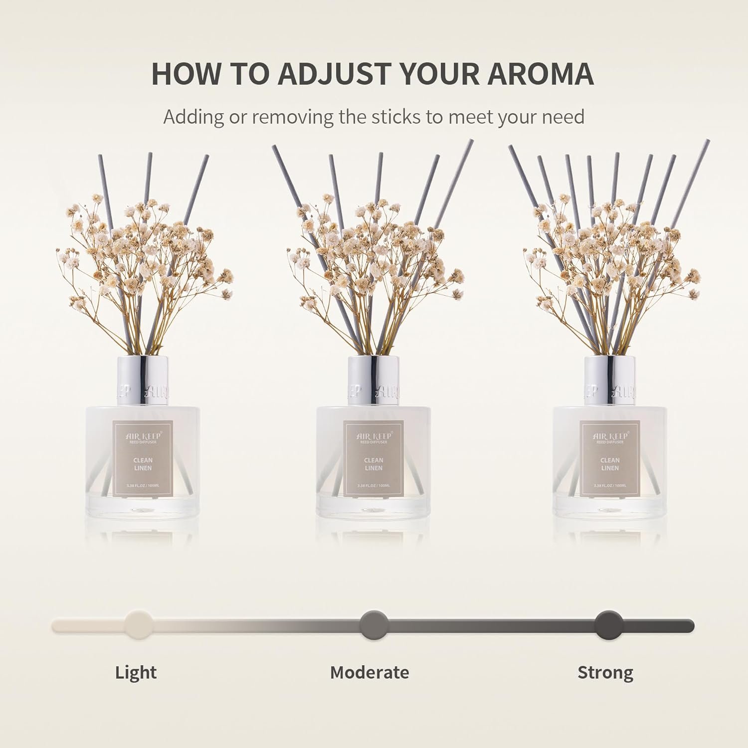 Easy Scent Control And Long-Lasting Fragrance:High quality materials make our products can emit long lasting fragrance. You can choose to add or remove the number of reed sticks to match your taste. It takes 1 or 2 days for the fabric sticks to soak in the scent. When the fragrance weakens, turn the reed sticks upside down or replace them with new ones