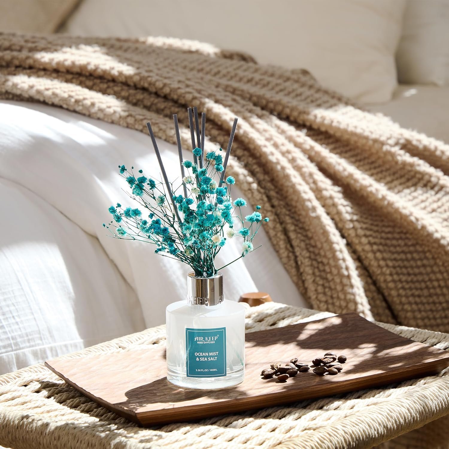 Wholesale OEM ODM Airkeep Reed Diffuser Set,3.38 fl oz (100 ml) – Ocean Mist&Sea Salt Oil Diffusers with 8 Reed Sticks,Home Fragrance Reed Diffuser for Bathroom Shelf Decor Factory & Supplier