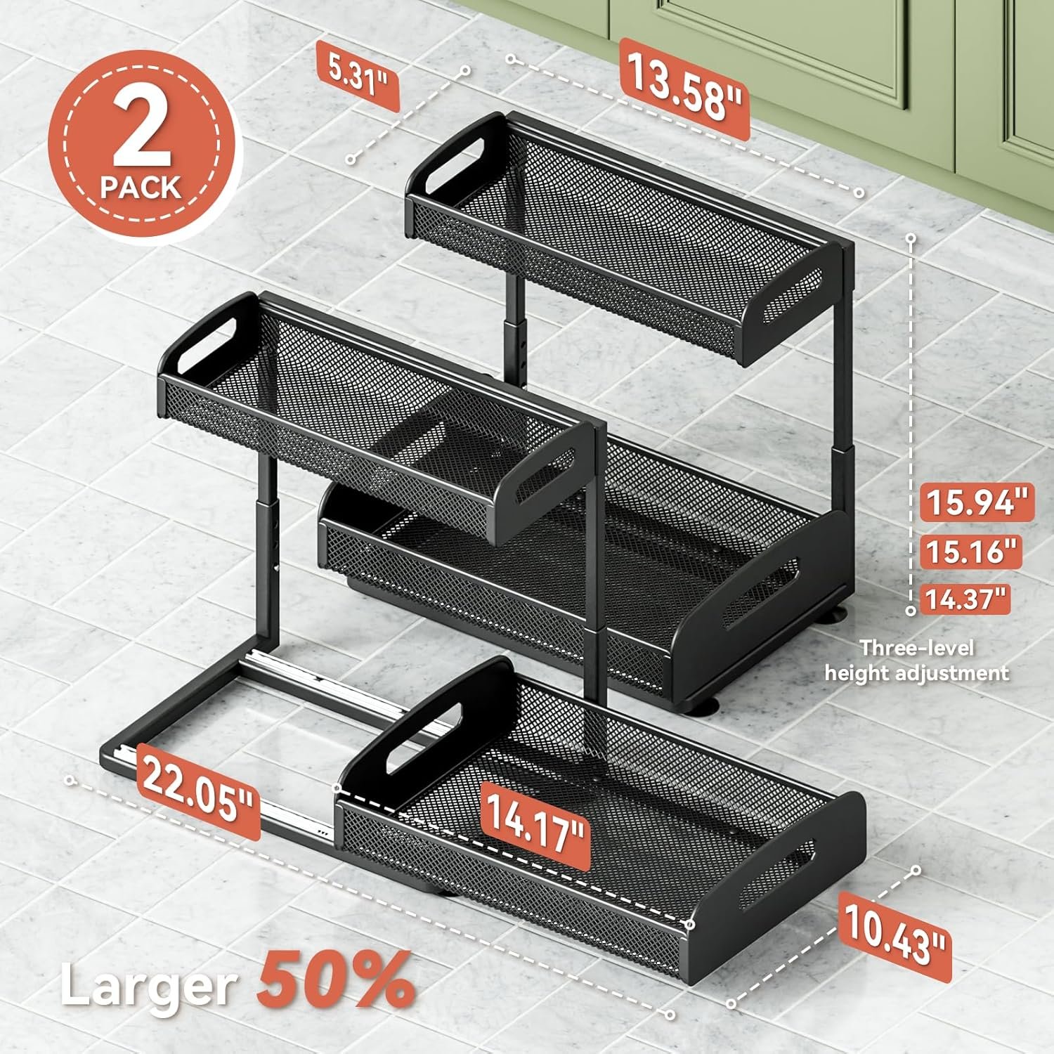 #YASONIC #Sink #Organizer #Metal #Pack #Height #Adjustable #Kitchen #Sink #Organizer #Pull #Drawer #Inches #Cabinet #Organizers #Storage #Kitchen #Bathroom #Black
